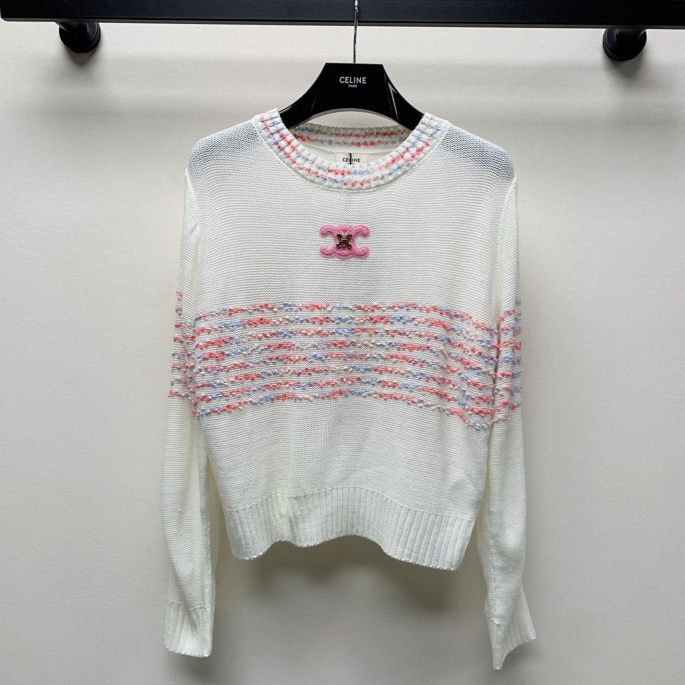 Celine 25 Striped Sweater White Wool Polyester 281500