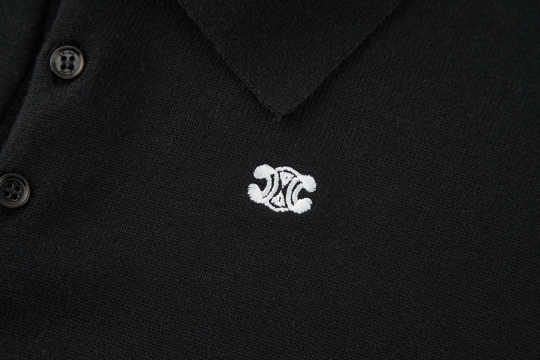 CELINE Embroidered Arc de Triomphe Knitted Polo Cotton