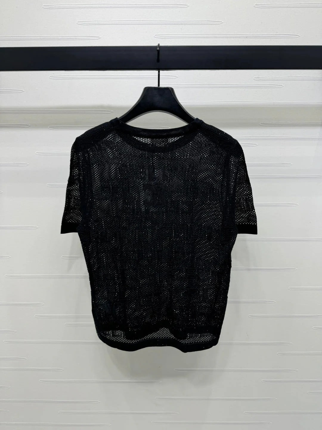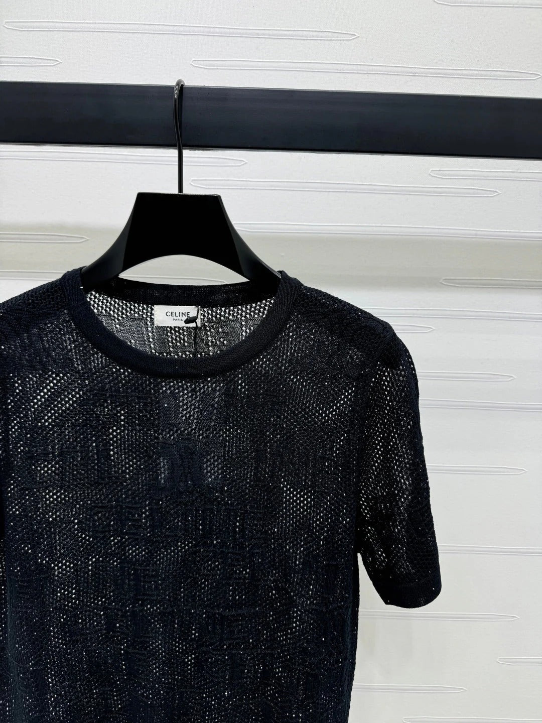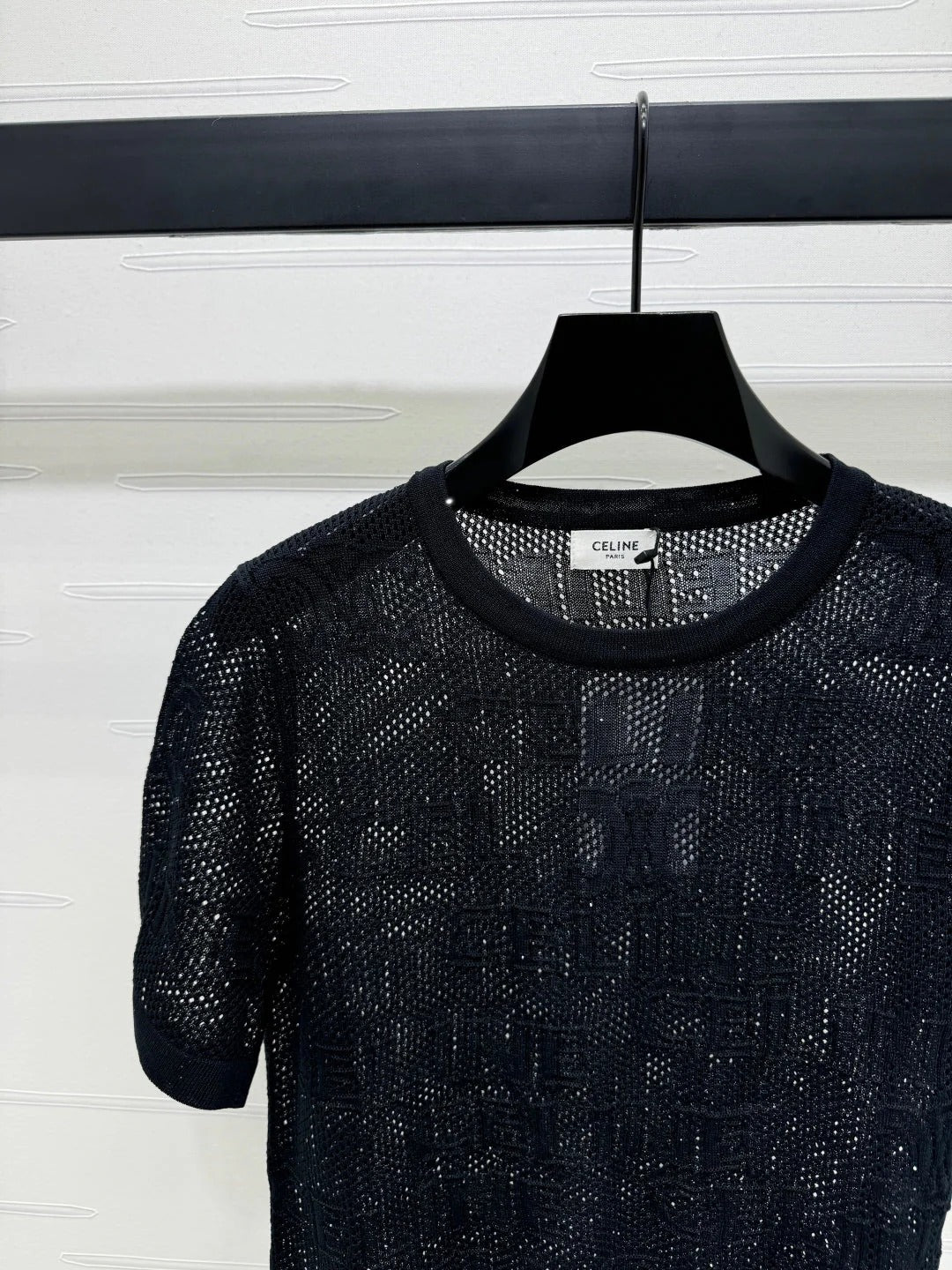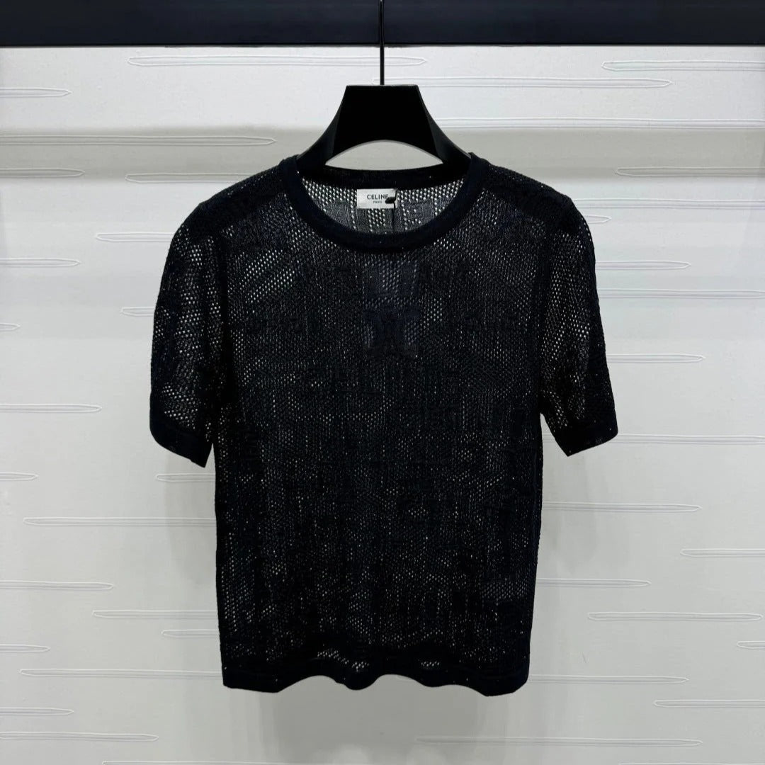 CELINE SHORT-SLEEVE CROCHET TOP BLACK 274808