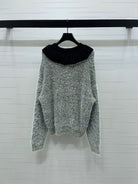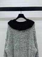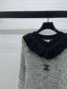 Chanel 2025 Ruffled Collar Shimmering Sweater Gray Black Polyester Wool 319566