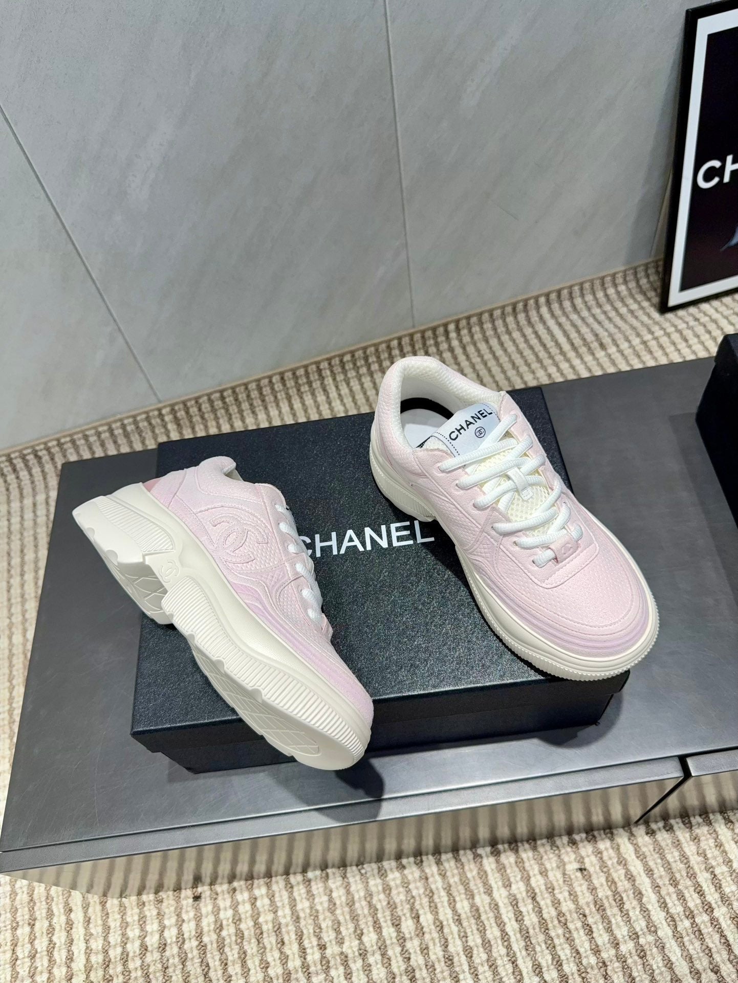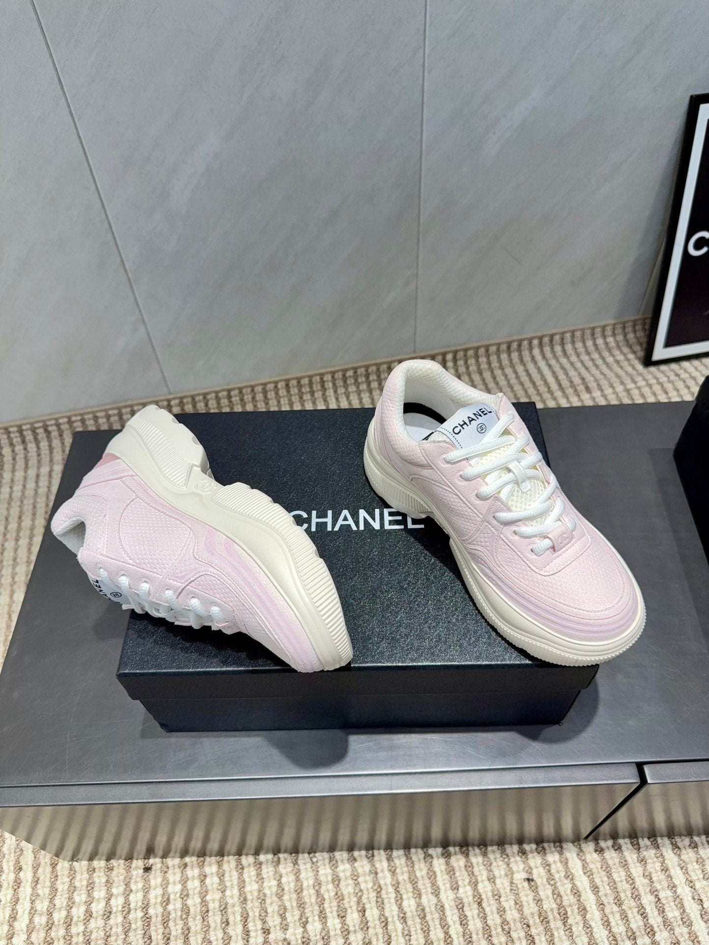 Chanel 25 Sneaker Pink White Mesh Fabric 540319
