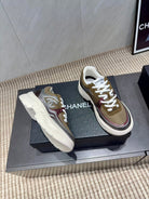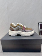 Chanel 25 Sneaker White Brown Silver Mesh Leather 540314
