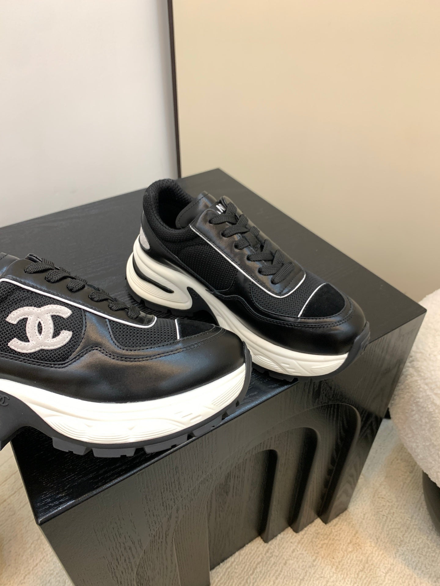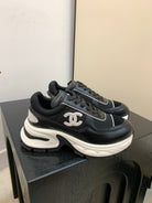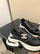 Chanel Sneakers Black White Leather And Mesh Fabric 537186
