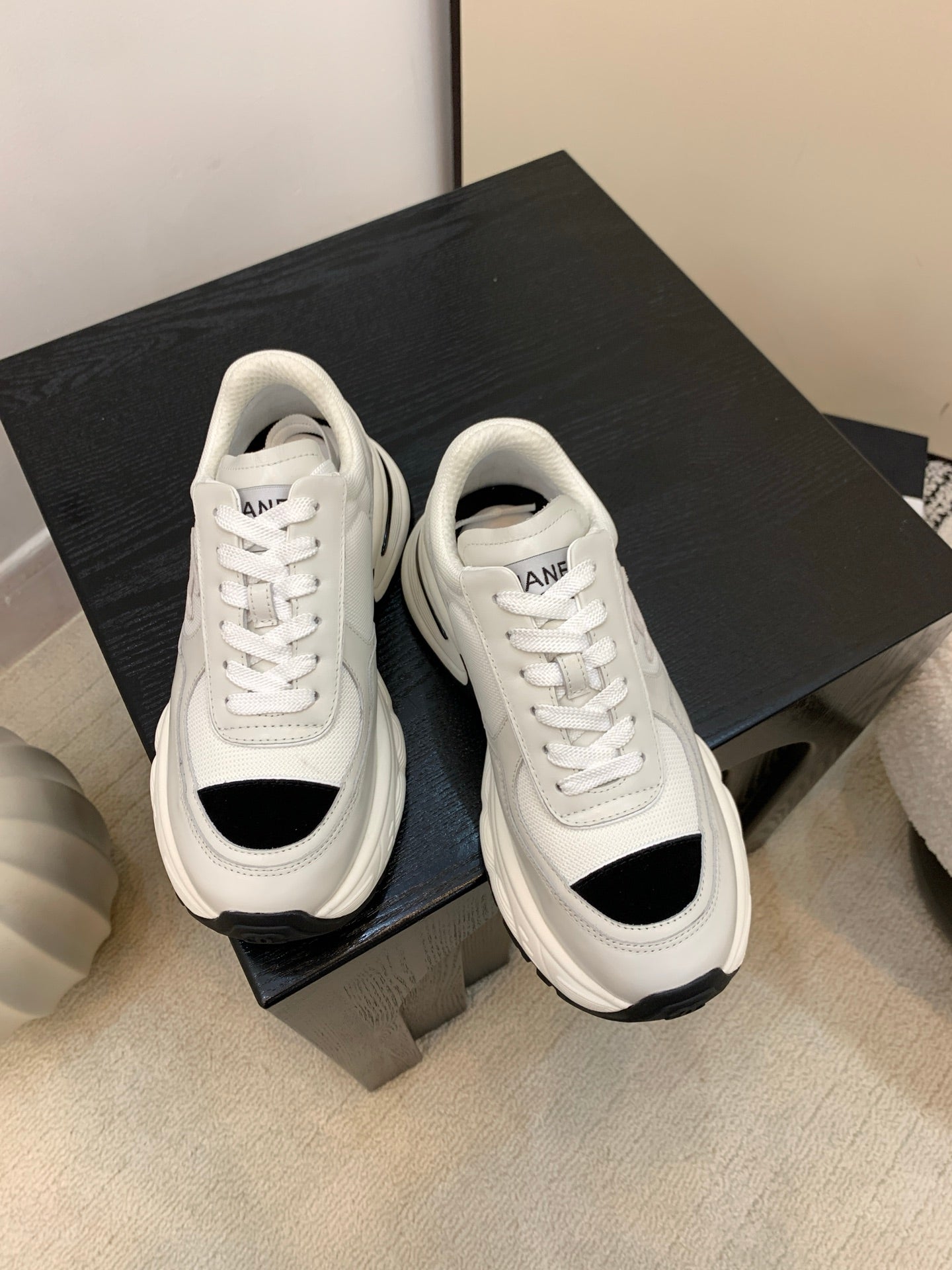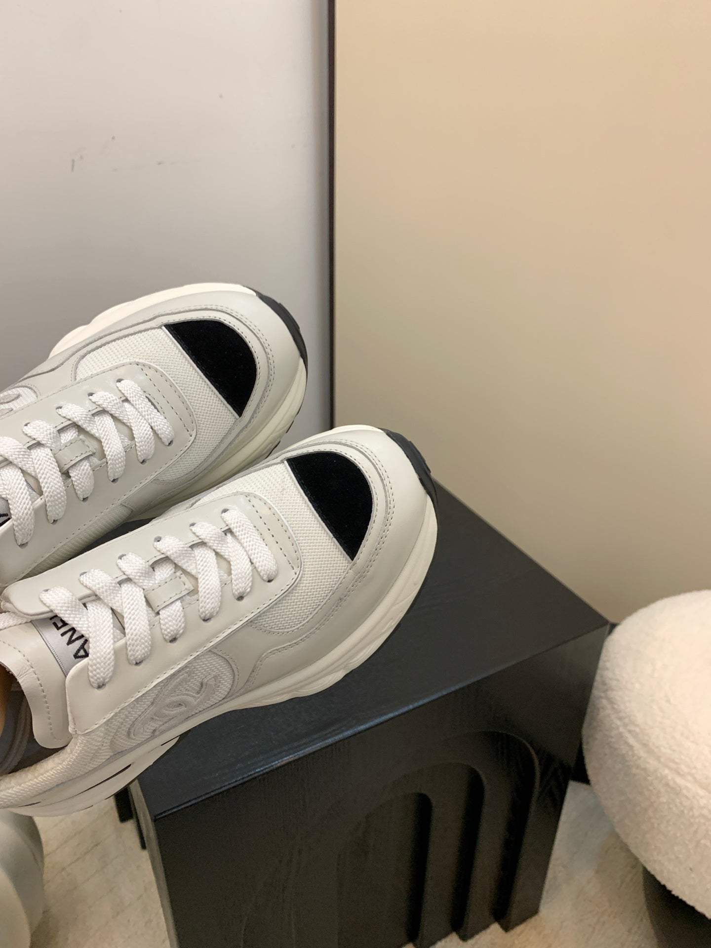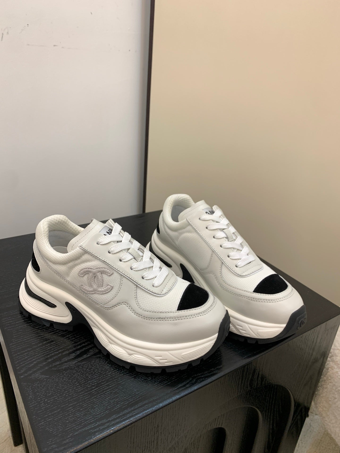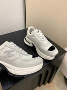 Chanel Sneakers Gray Black Leather And Mesh Fabric 537187
