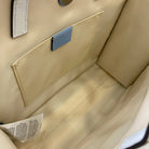 CHILDREN'S PUPPY PRINT TOTE BAG 28 IN BEIGE CANVAS AND WHITE CALFSKIN TRIM