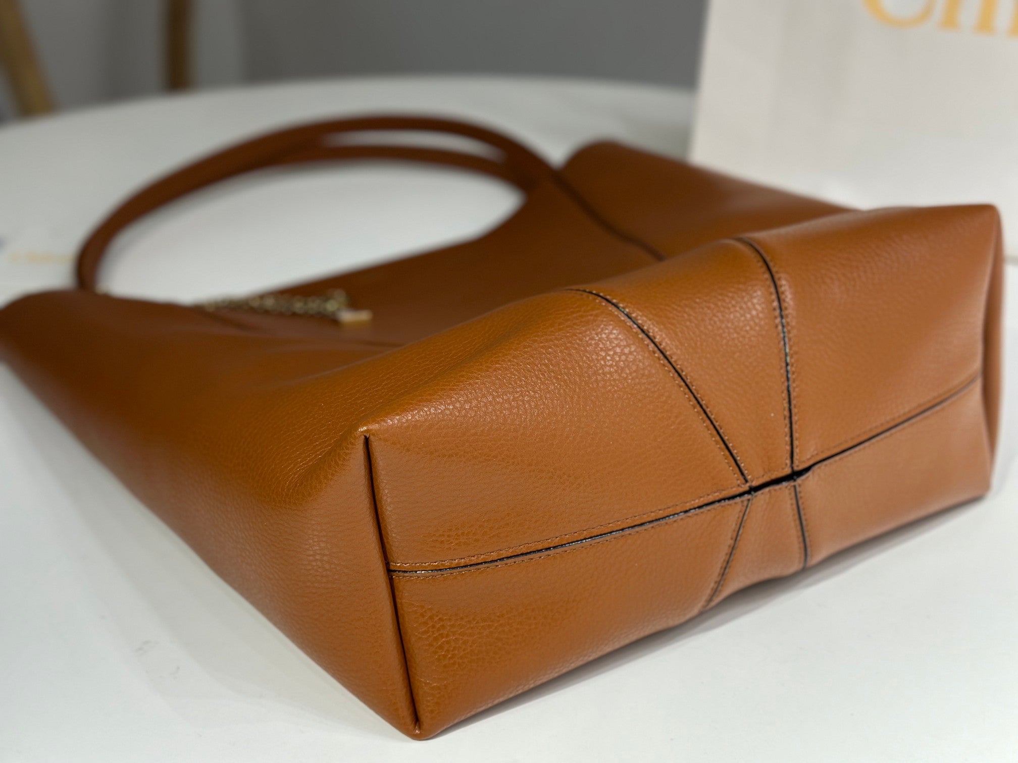 Chloe Spin Tote Bag Large 35cm Brown Calfskin 272217