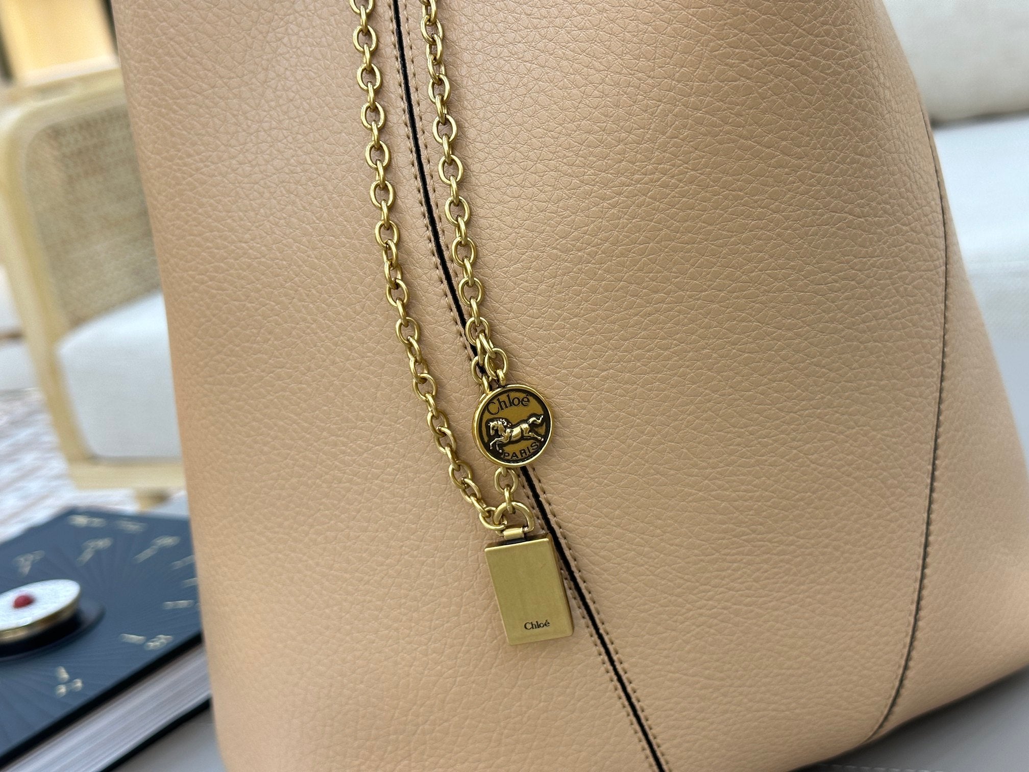Chloe Spin Tote Bag Medium 27cm Beige Calfskin 272302