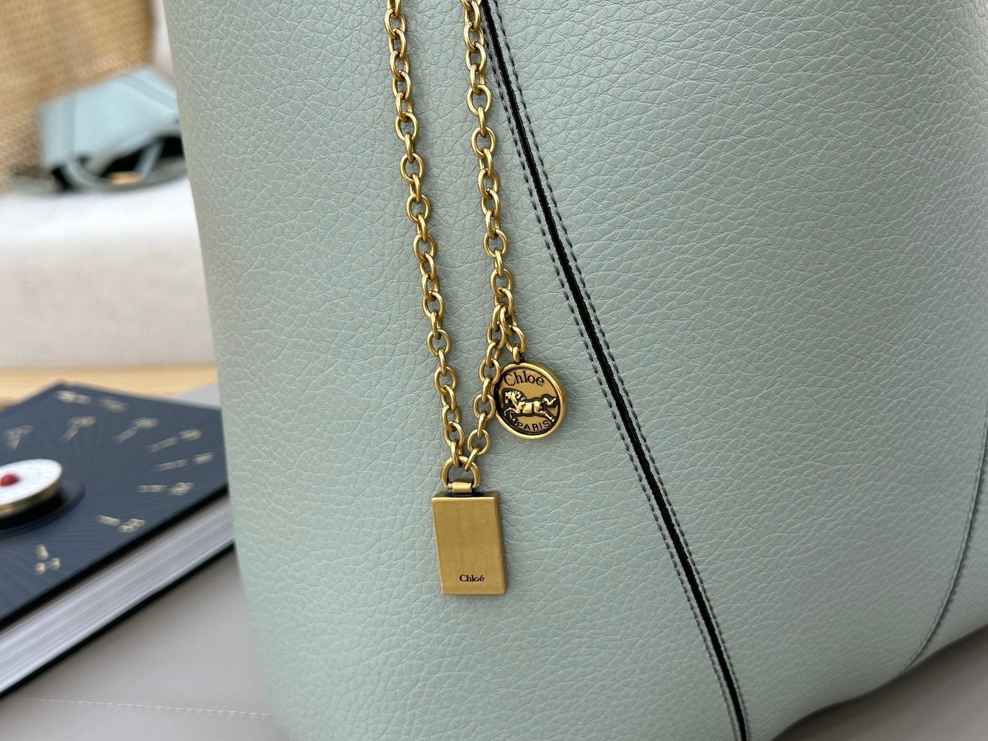 Chloe Spin Tote Bag Medium 27cm Light Blue Calfskin 272309