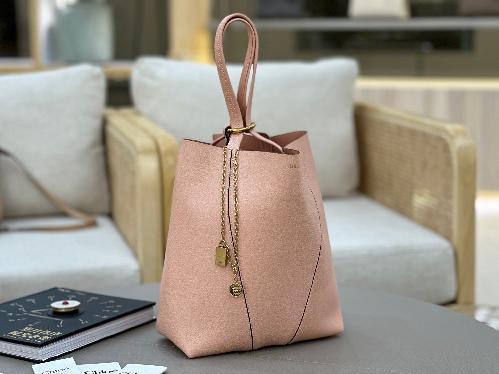 Chloe Spin Tote Bag Medium 27cm Pink Calfskin 272295