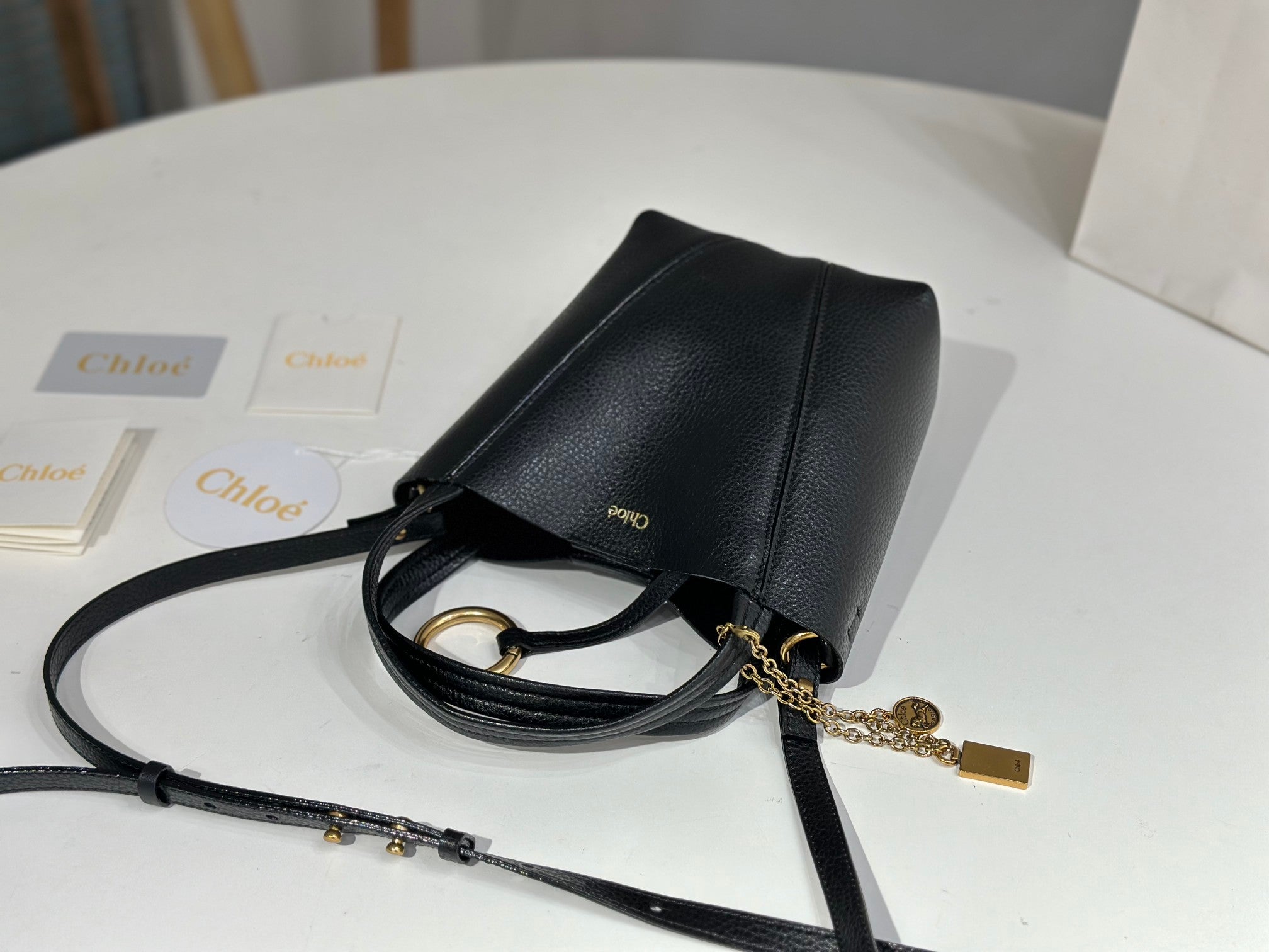 Chloe Spin Tote Bag Small 18cm Black Calfskin 272275