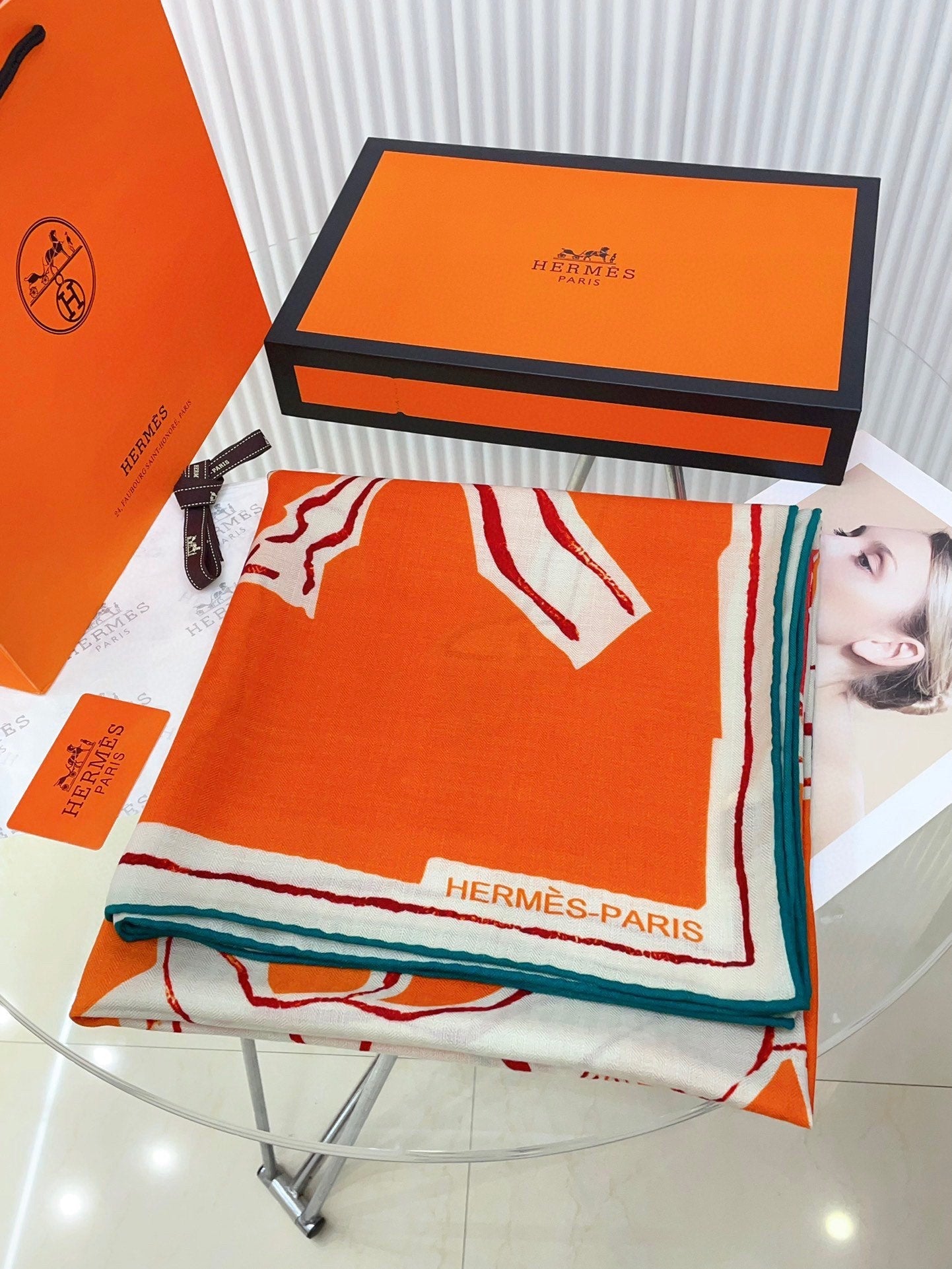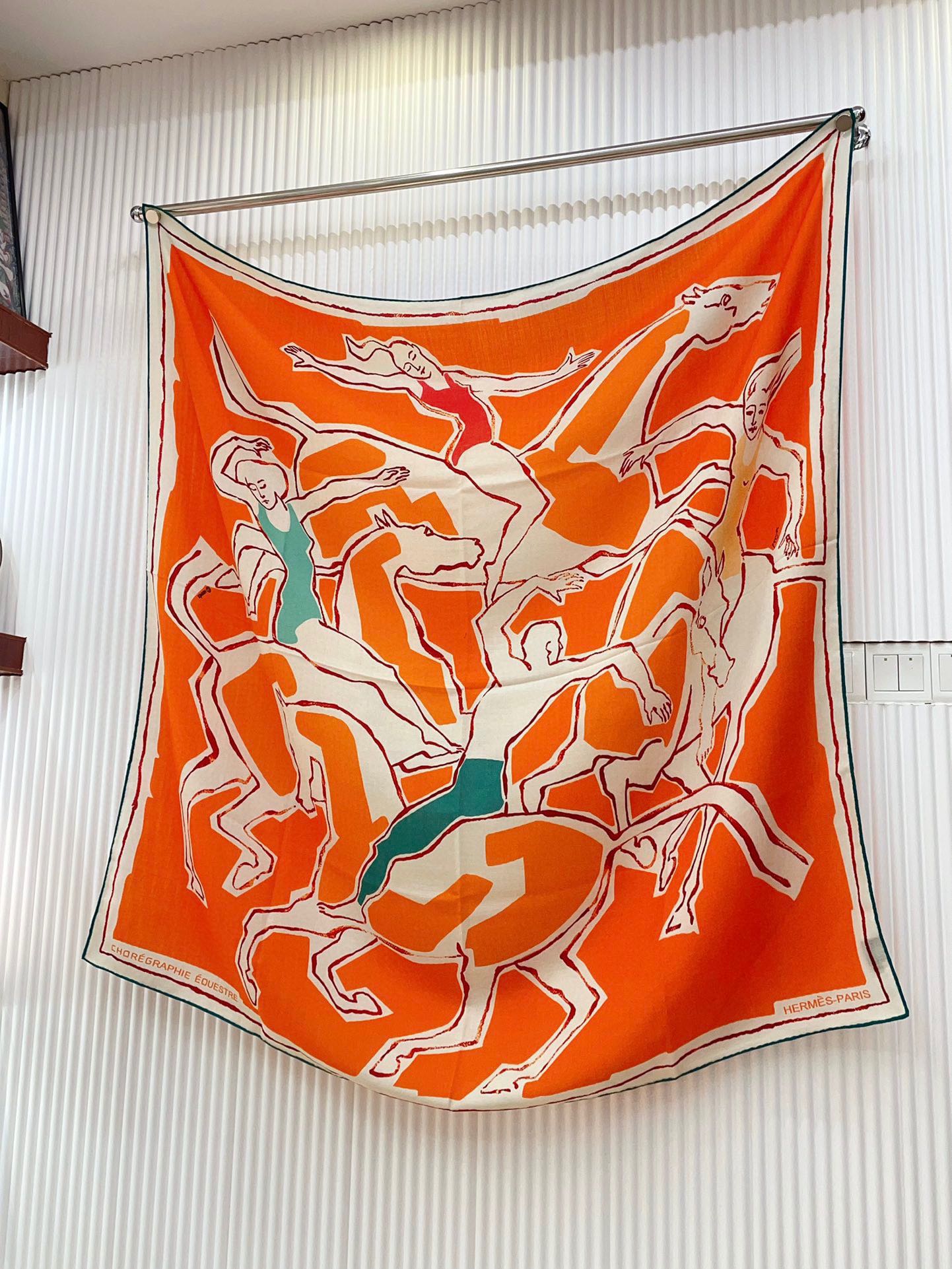 Choregraphie Equestre Scarf 140 CM Orange Colorful Cashmere And Silk 393170