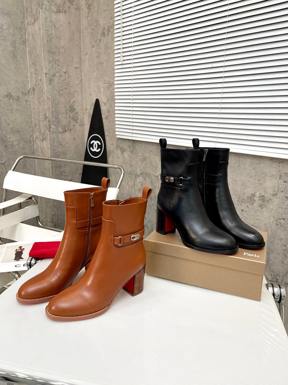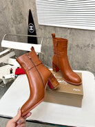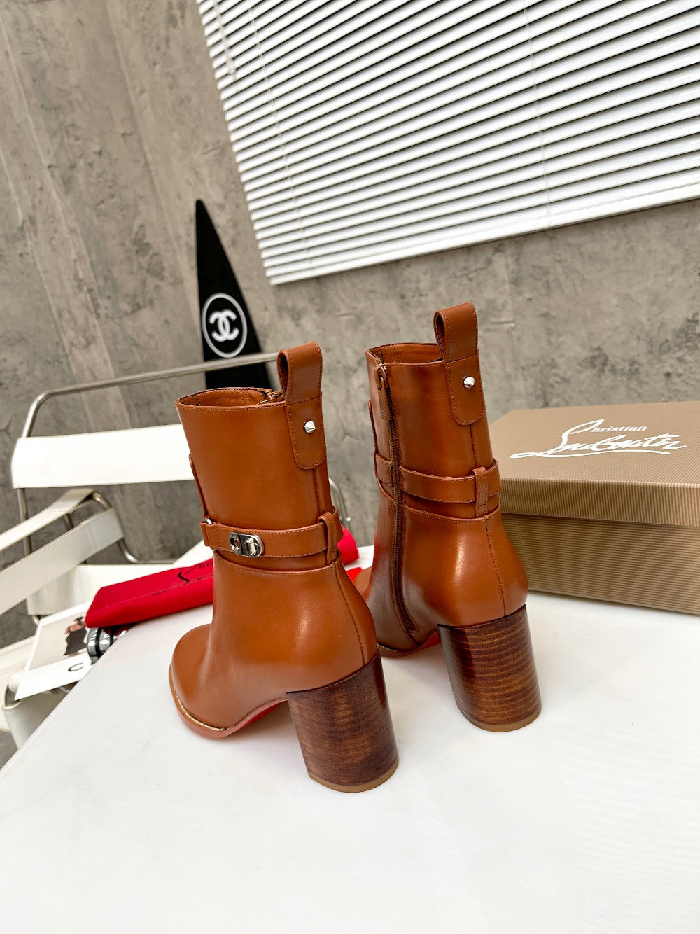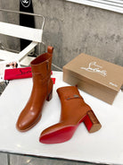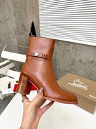 CL Turn-Lock Buckle Red Sole Booties Brown Calfskin 521439