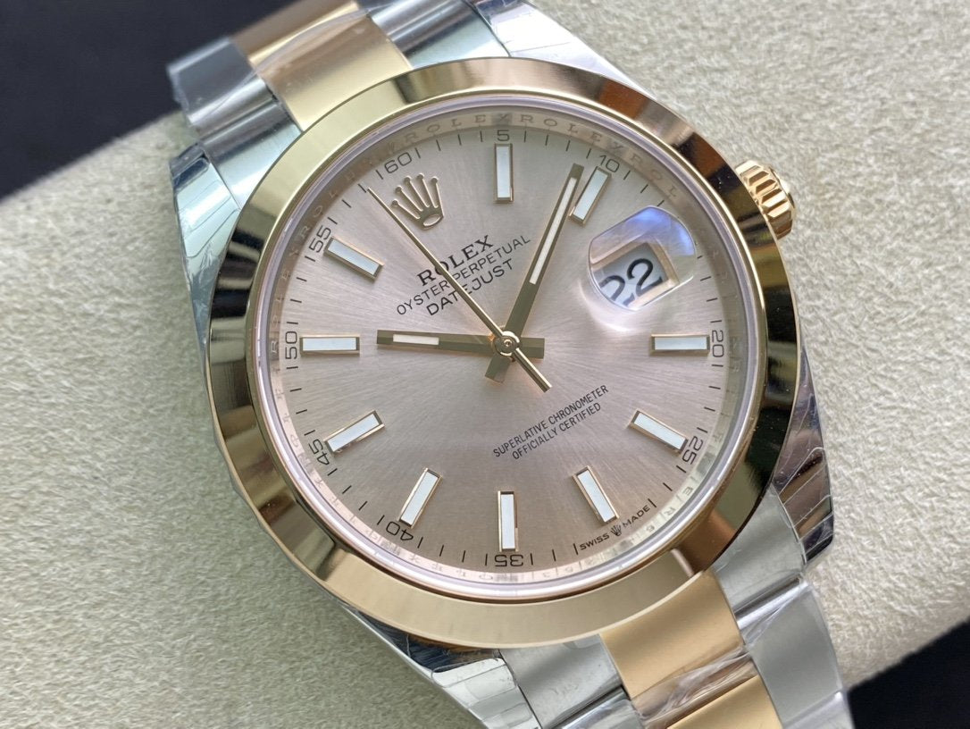 DATEJUST 41MM SMOOTH BEZEL GOLD STEEL GREY DIAL