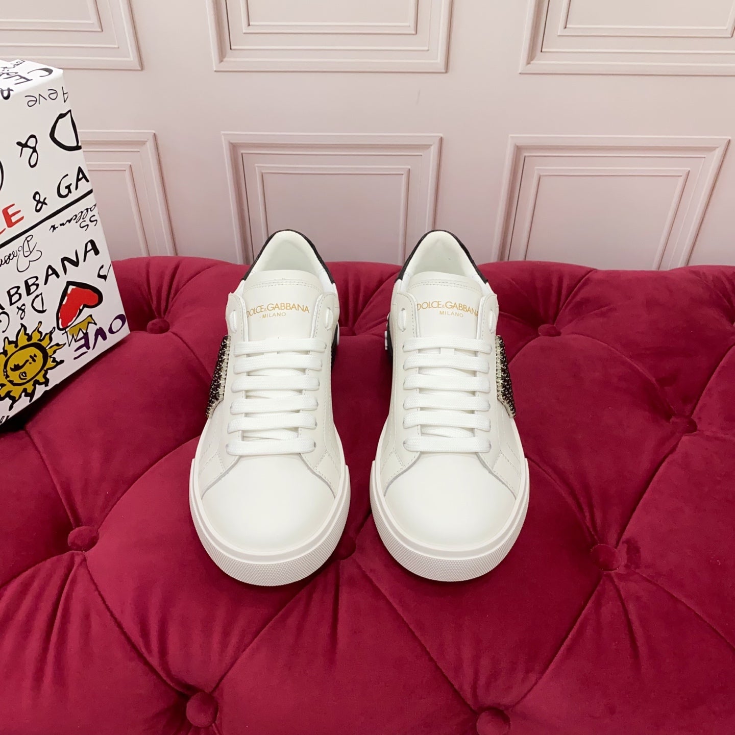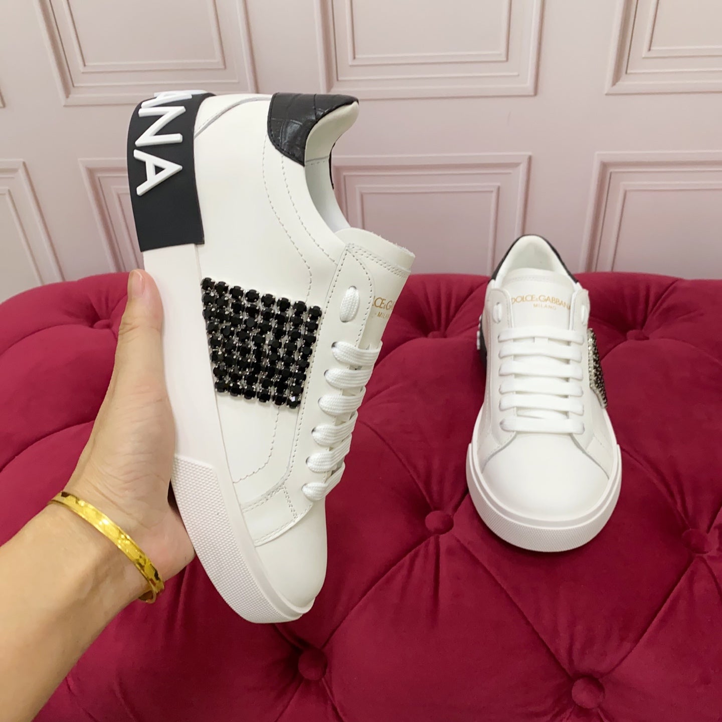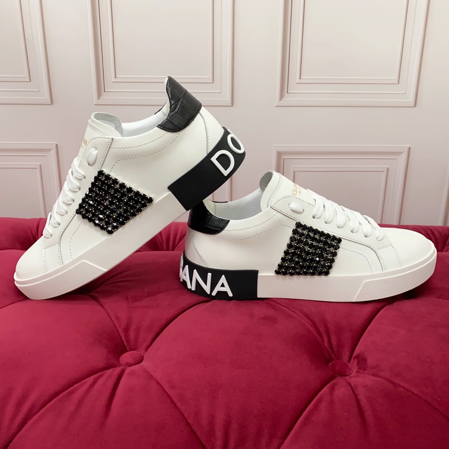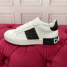 DC 25 Portofino Vintage Sneakers Black White Cowhide & Rhinestone Silk 333876