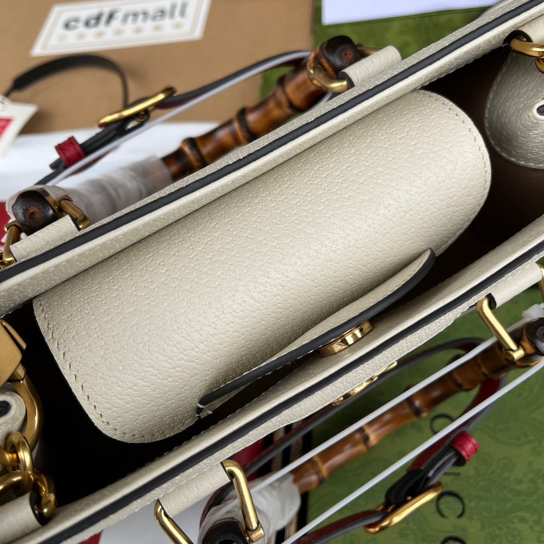DIANA BAMBOO SHOULDER BAG 27 IN WHITE CALFSKIN GOLD HARDWARE