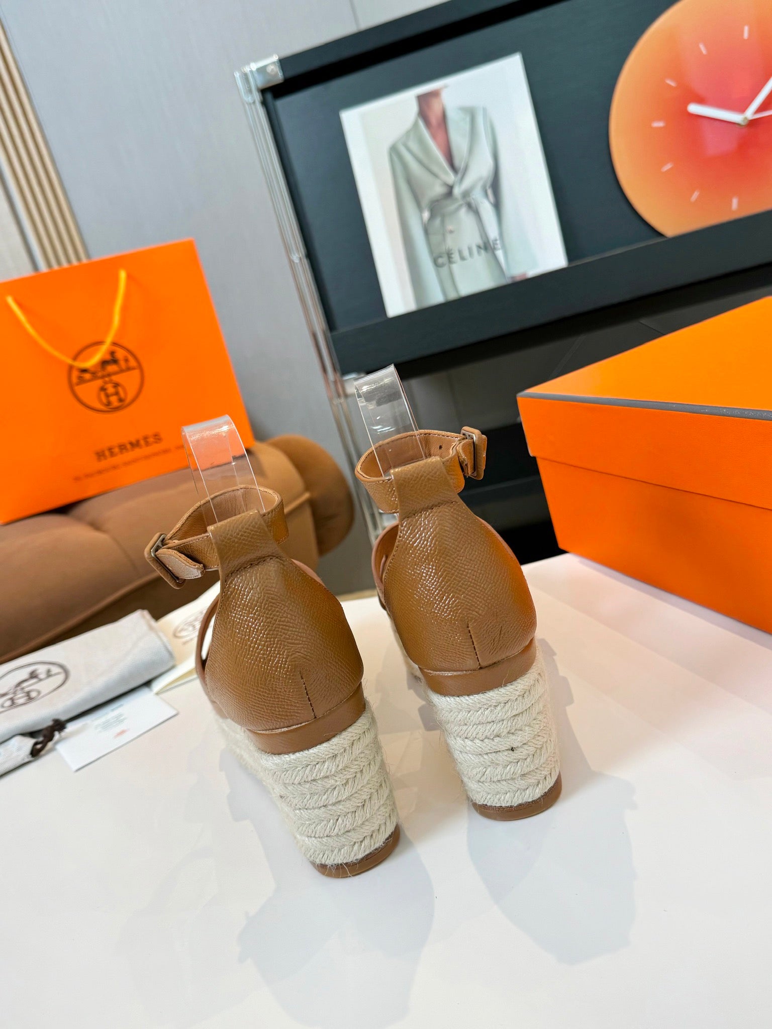 Elda espadrille 80 Light Brown Epsom Calfskin