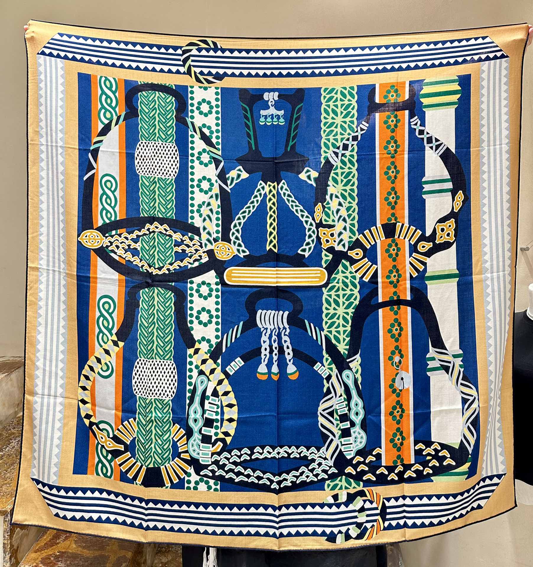 Fantaisie d'Etriers Scarf 140 CM Green Mix Blue Colorful Silk