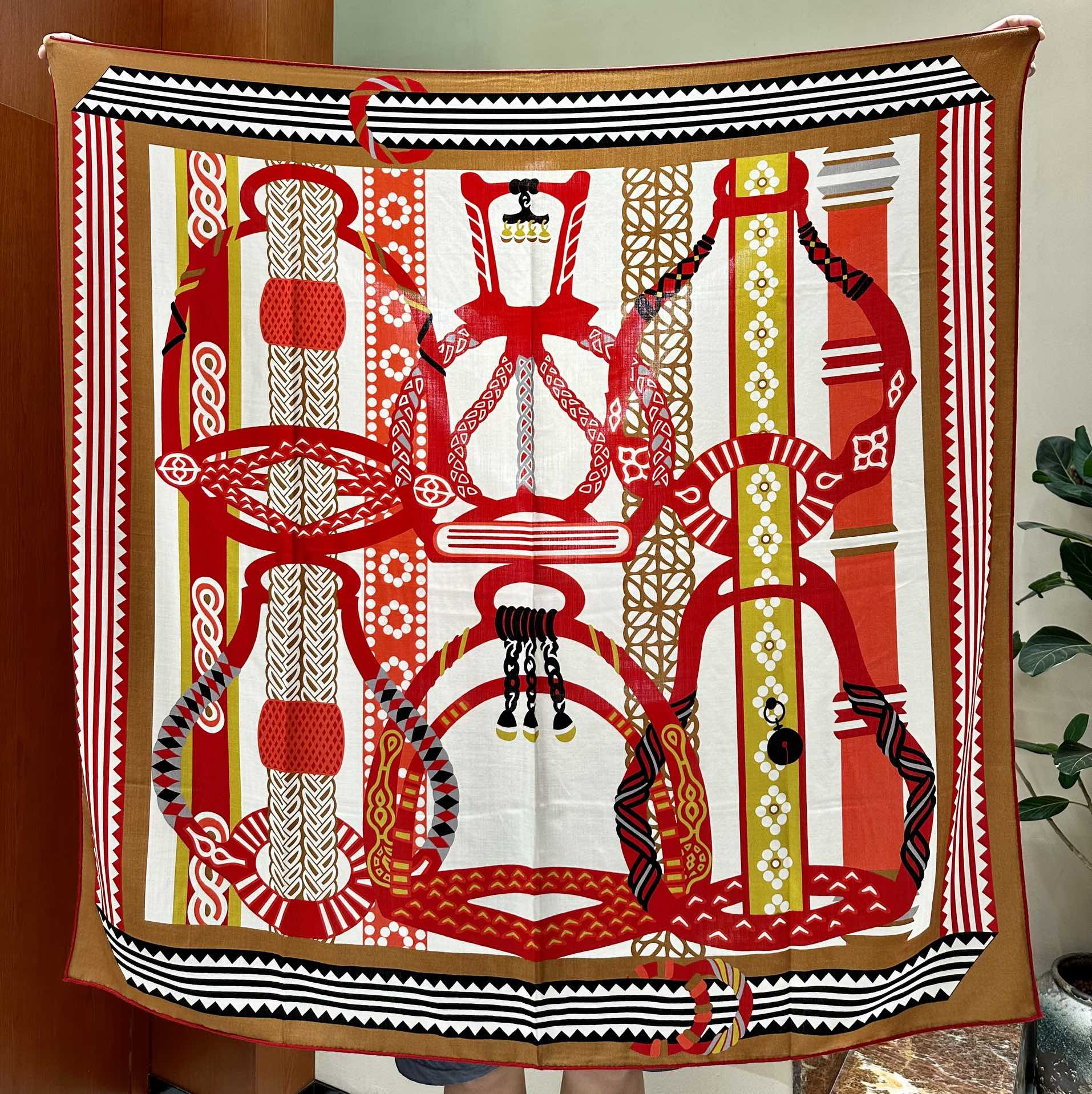Fantaisie d'Etriers Scarf 140 CM Red Colorful Silk