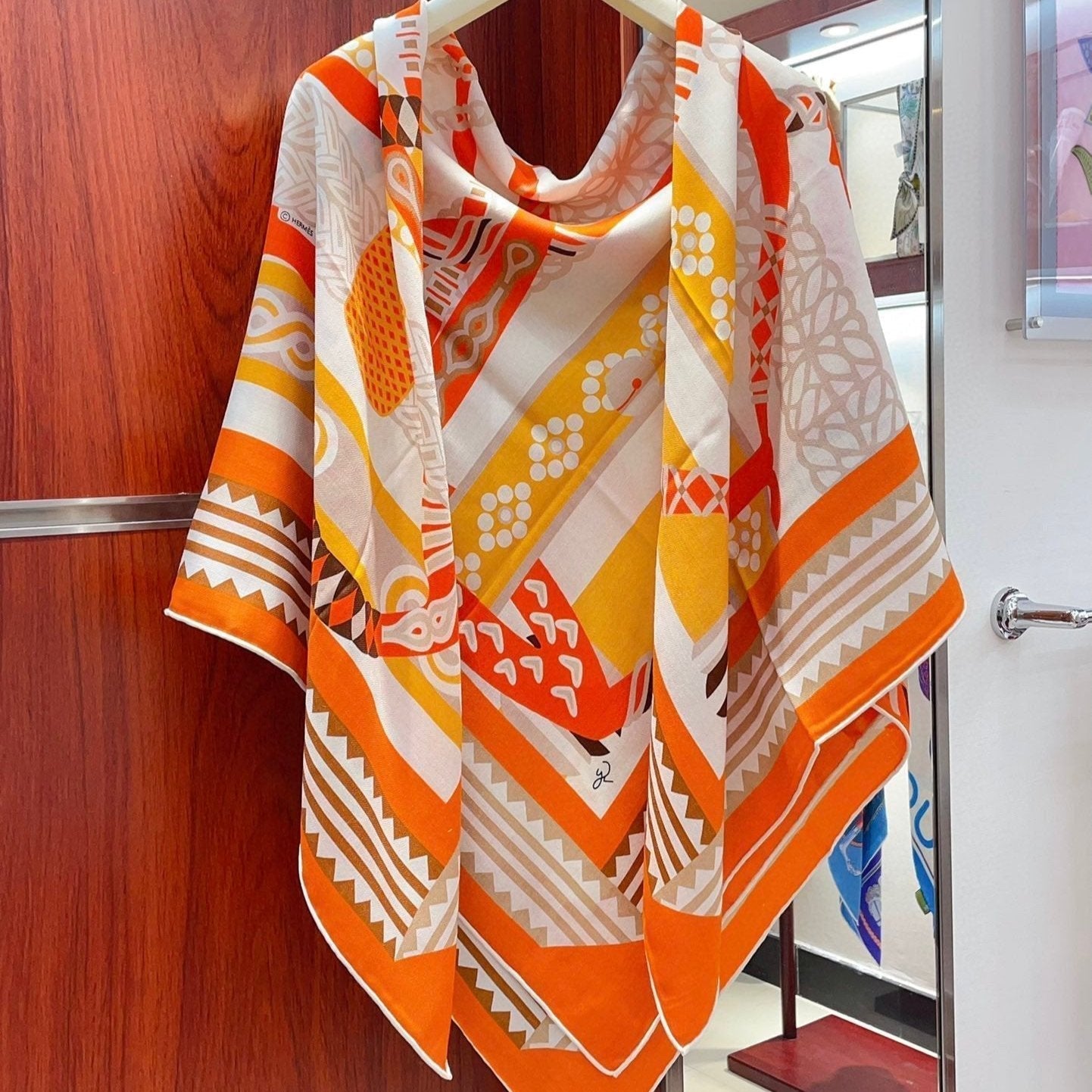Fantaisie d'Etriers Shawl 135 CM Orange Colorful Cashmere And Silk 402081