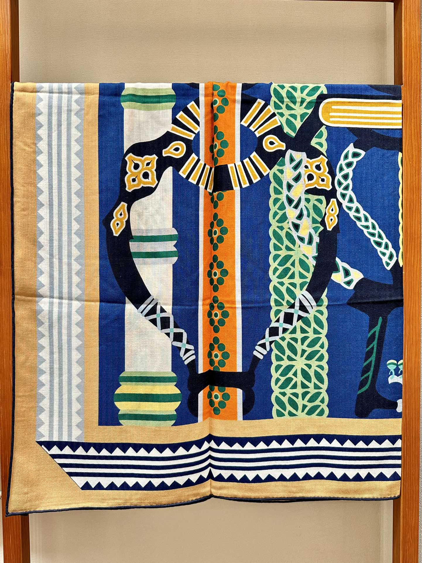 Fantaisie d'Etriers Shawl 140 CM Green Mix Blue Colorful Silk
