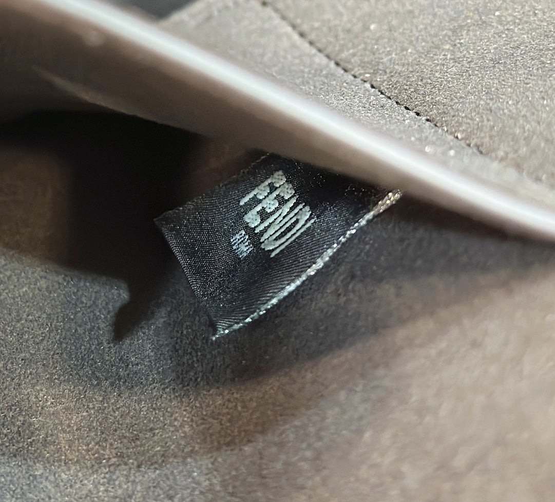 FENDI ORIGAMI LARGE 33 BROWN MIX BLACK FF JACQUARD FABRIC BAG