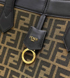 FENDI ORIGAMI MEDIUM 27 BROWN MIX BLACK FF JACQUARD FABRIC BAG