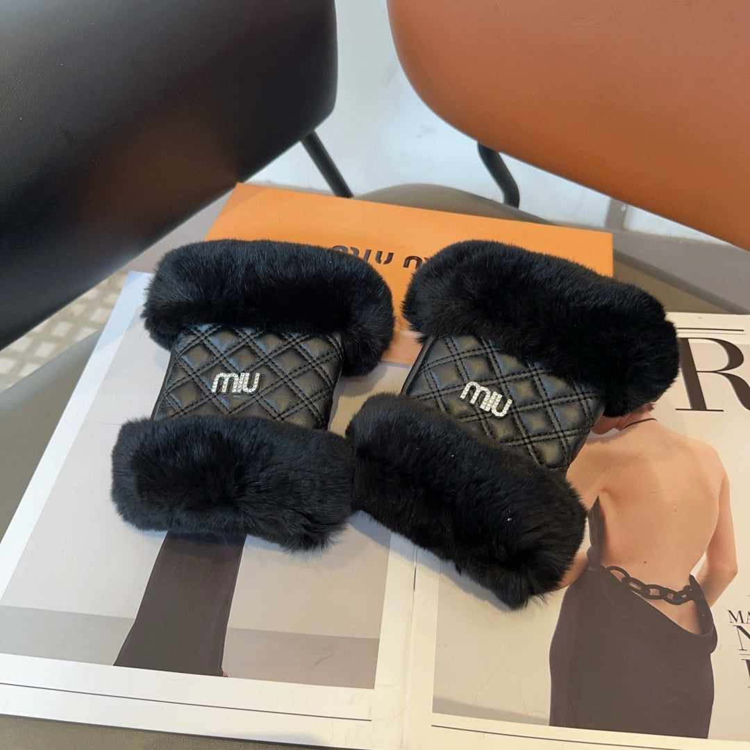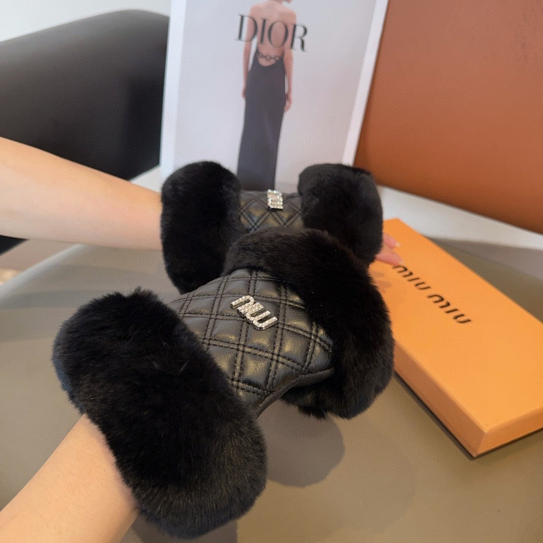 FINGERLESS GLOVES IN BLACK RABBIT FUR AND LAMBSKIN 463912
