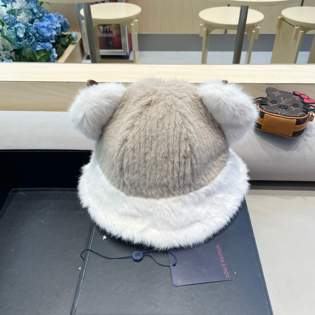 FISHERMAN HAT IN ECRU BEIGE MIX WHITE WOOL AND RABBIT FUR 409758