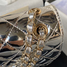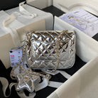 FLAP BAG MINI RECTANGE 20CM SILVER METALIC CALFSKIN