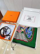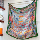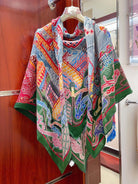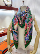 Gavroche Super Silk Quest Détail Scarf 140 CM In Green Colorful Cashmere And Silk 236108