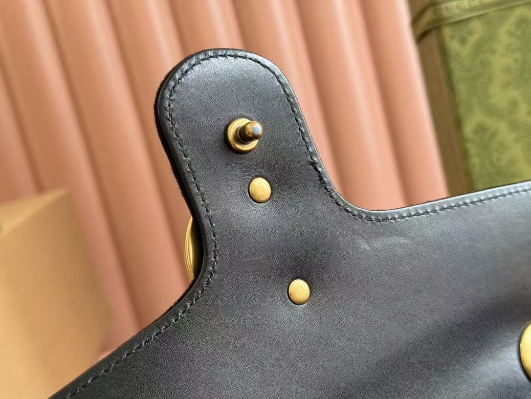 GG 2025 Marmont 26cm Bag Black Gold Velvet Leather
