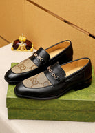 GG BLACK LEATHER AND CANVAS MAXI LOAFERS