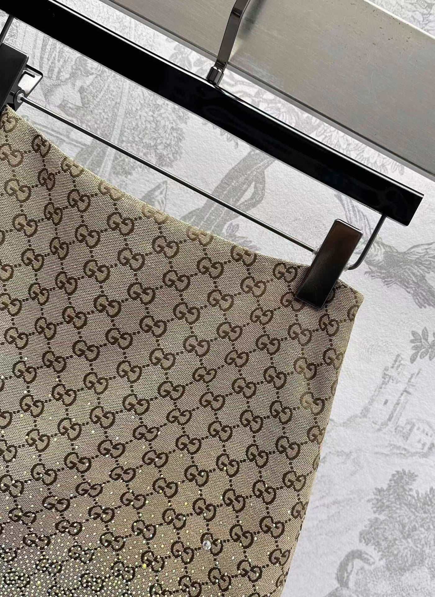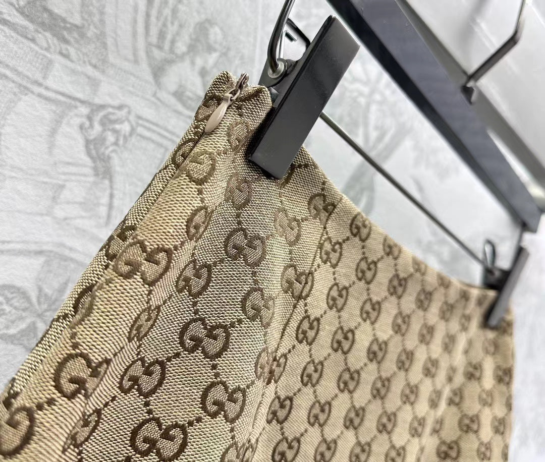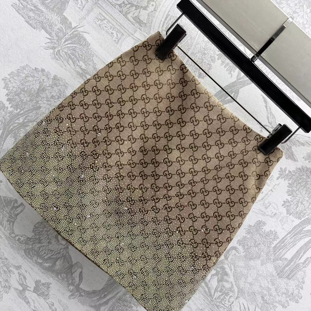GG Brown Mix Light Green Canvas Mini Skirt With Embroidery