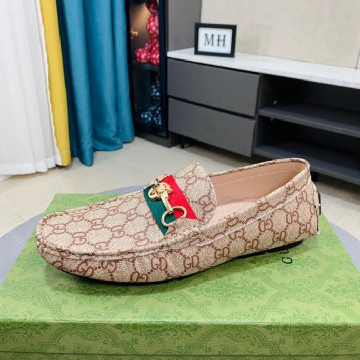 GG DRIVER WITH WEB BROWN LEATHER