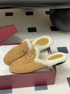 GG horsebit flat mules nude suede and wool 534708