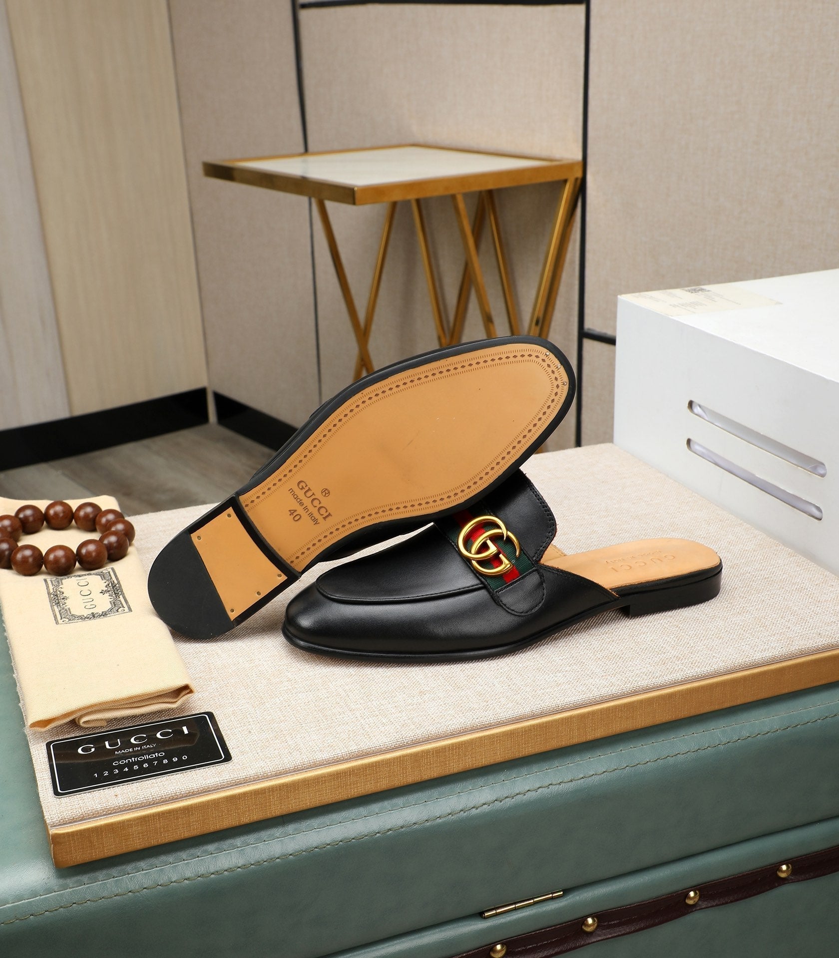 GG Men's Interlocking GG Mule Black Cowhide 111485