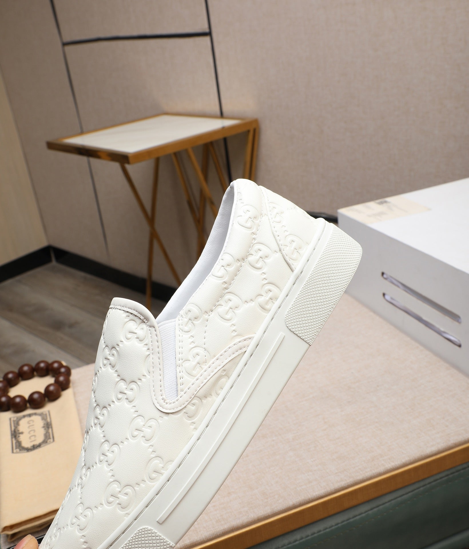 GG Men's Slip on White Embossed Calfskin 518843