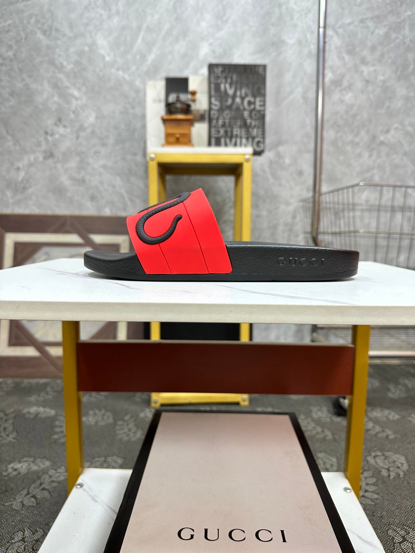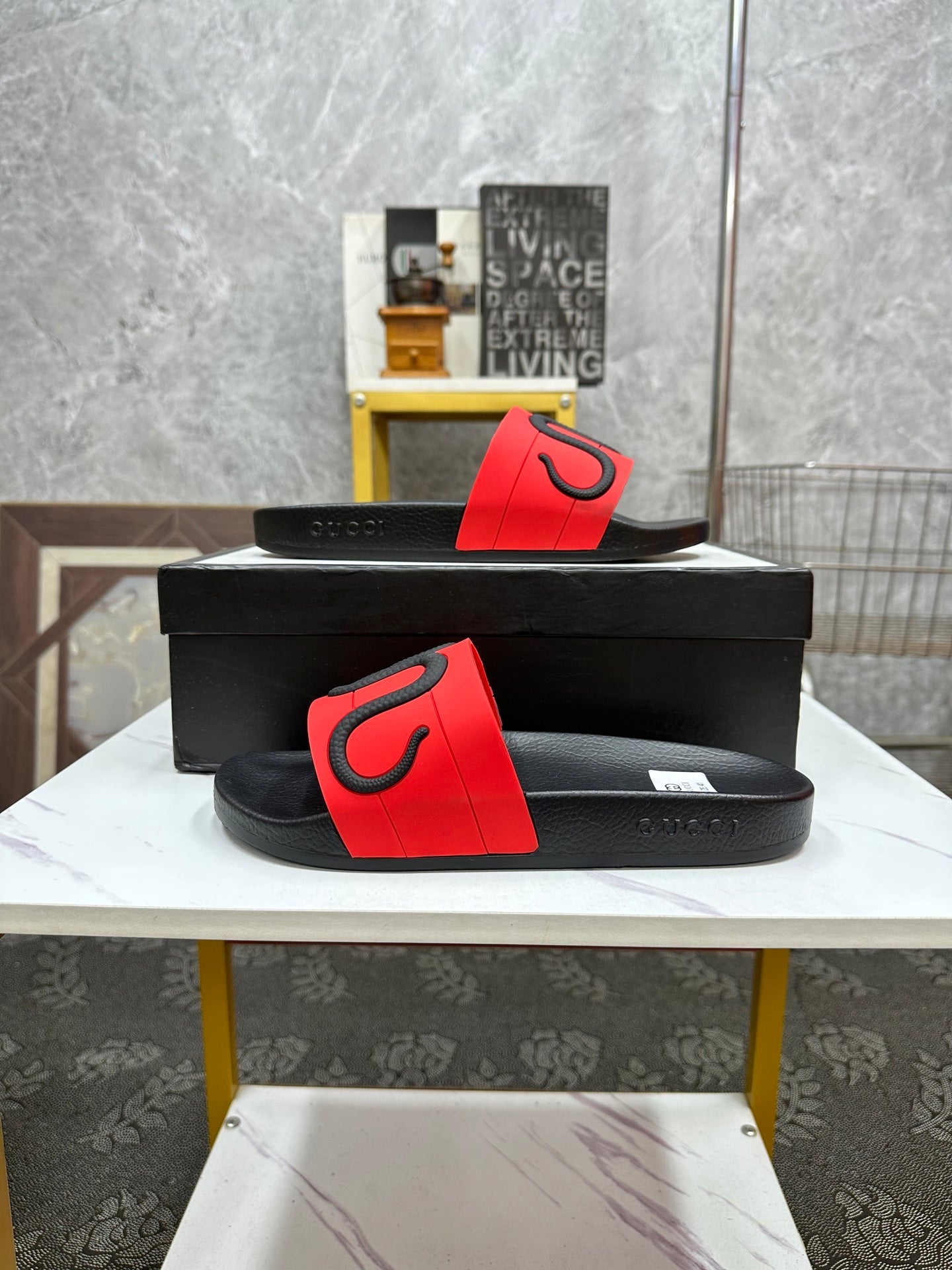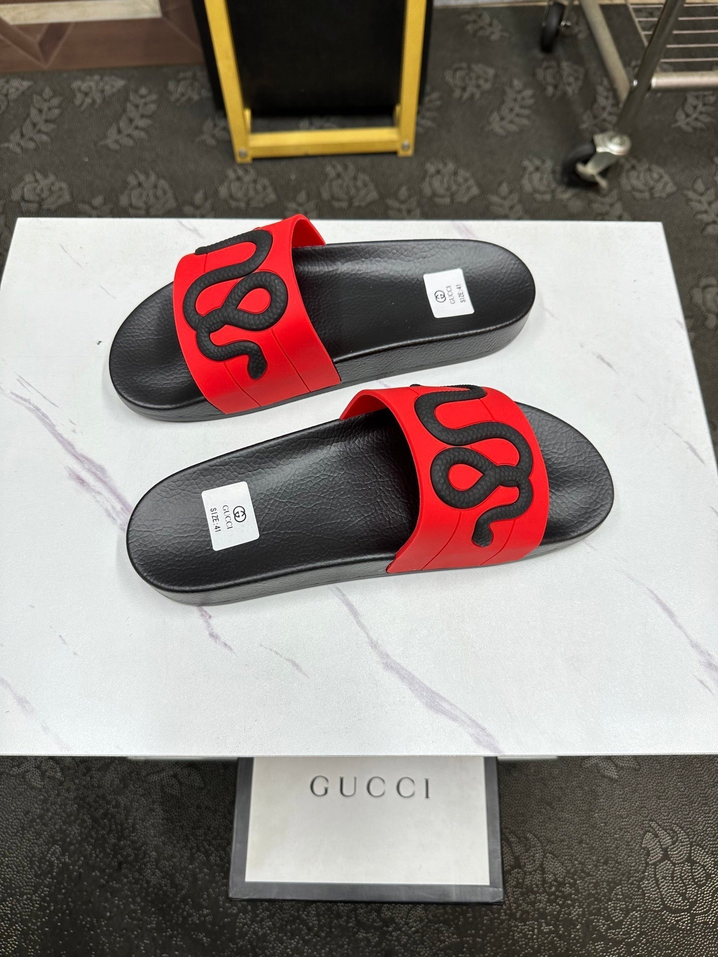 GG Men's Snake Embossed Slide Red Rubber 540114