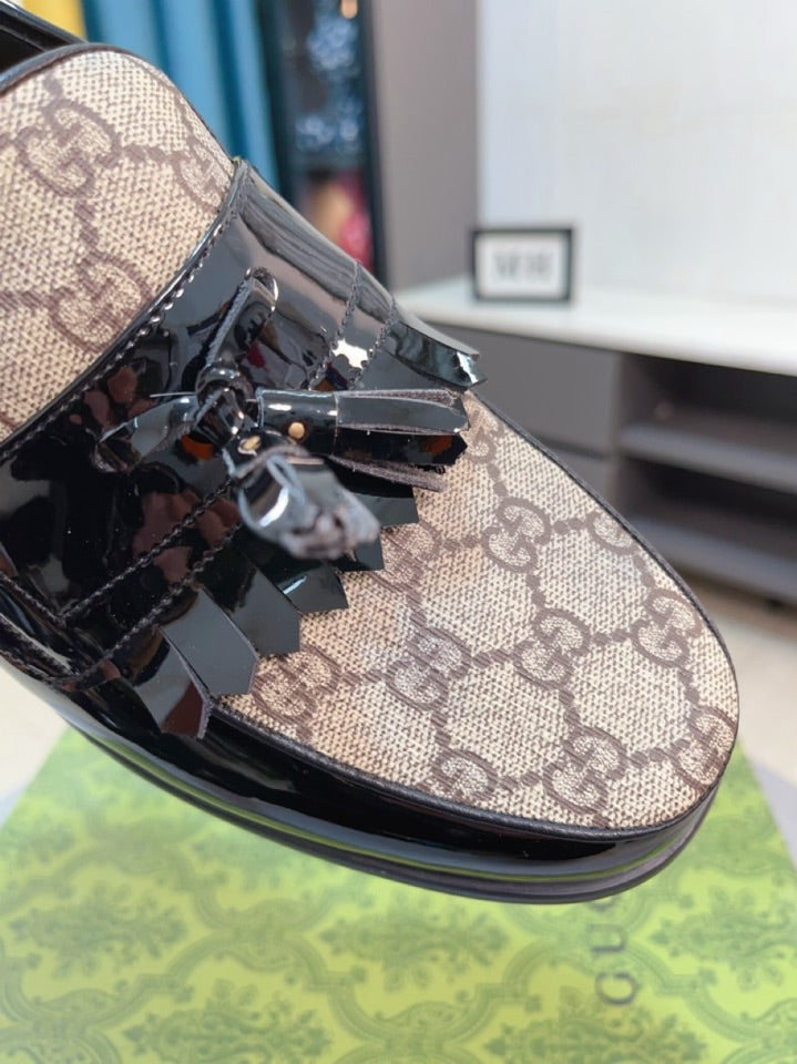 GG Men's Tassel Loafer Black Canvas Cowhide 330398