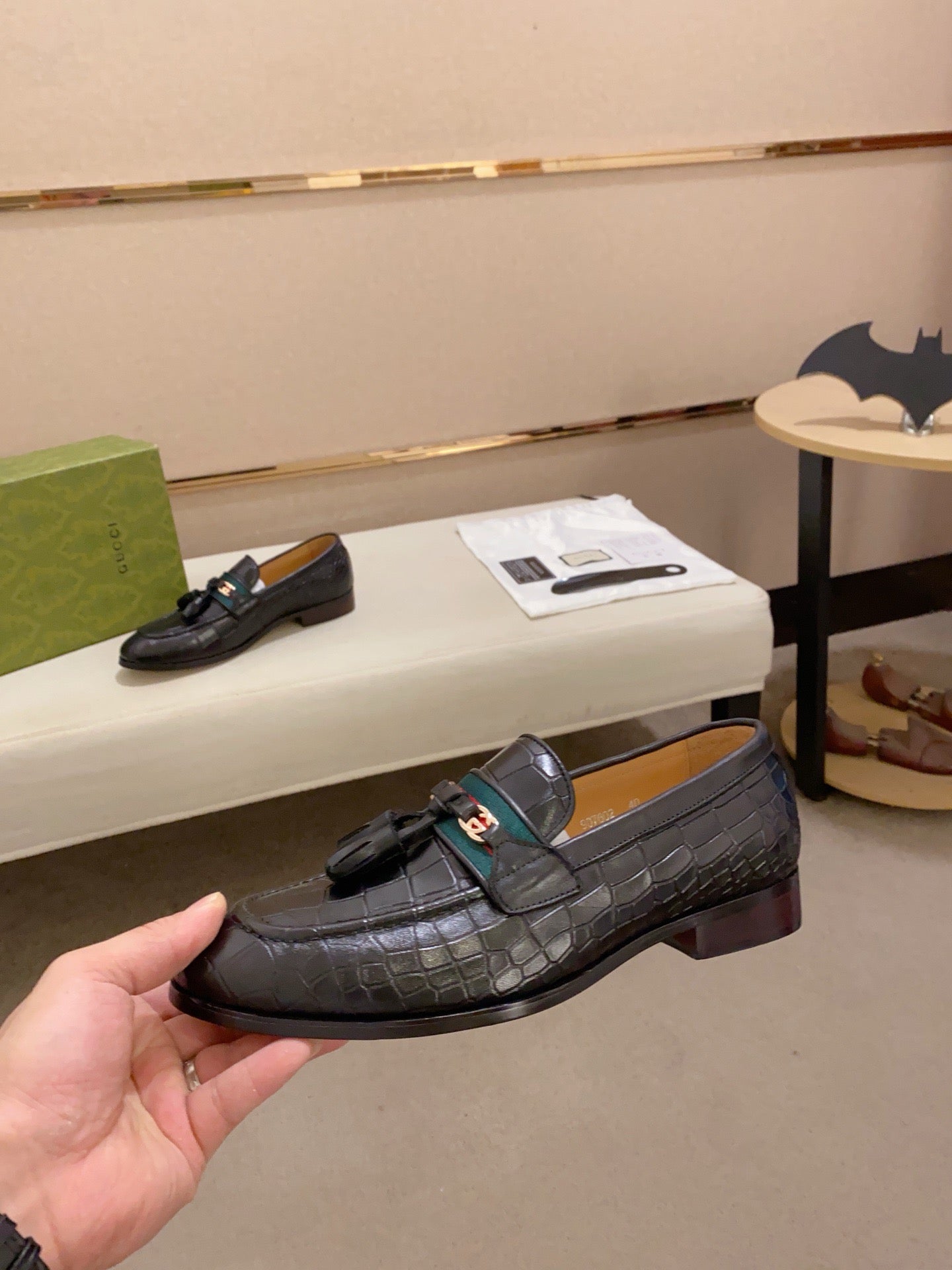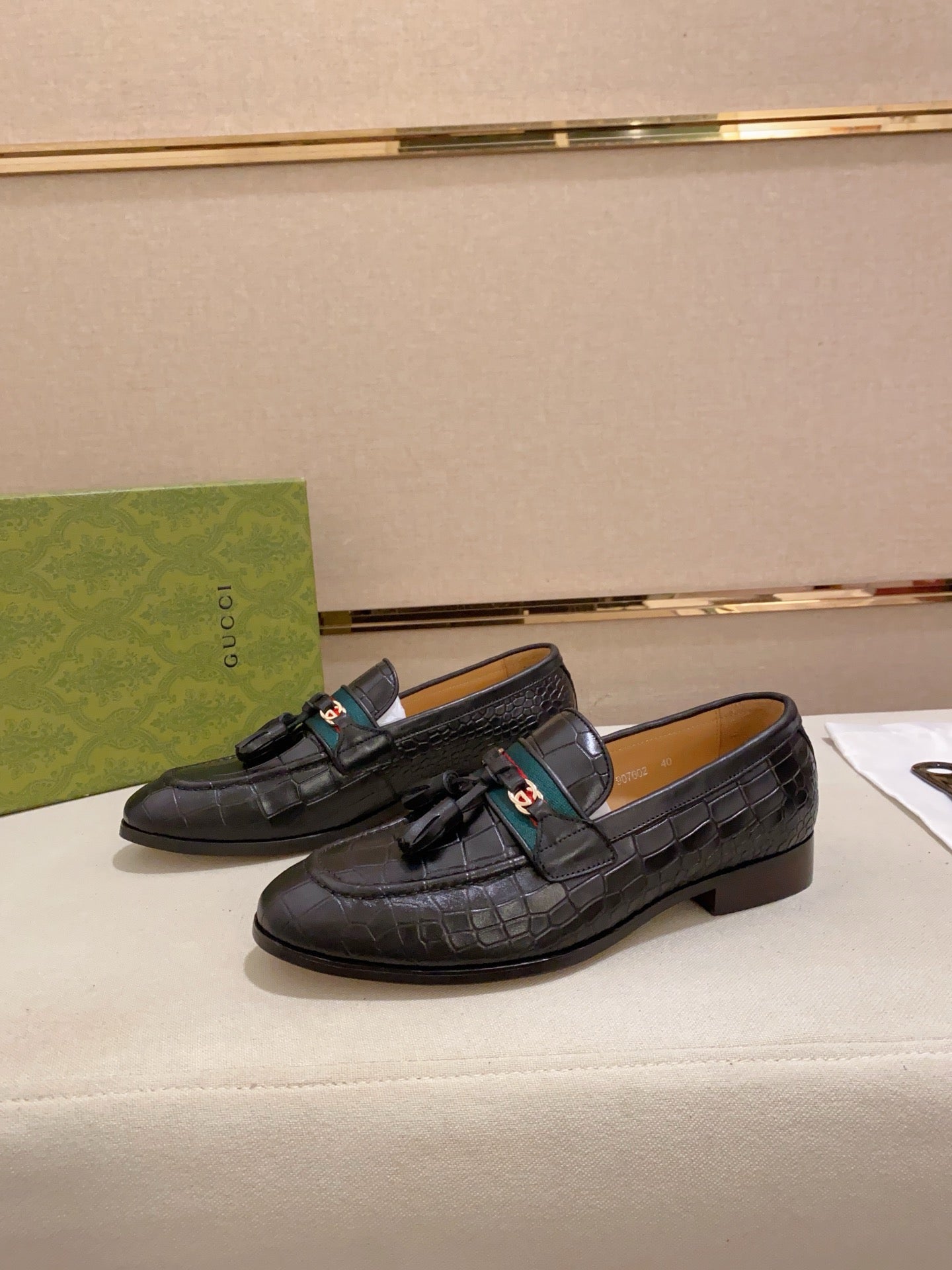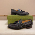 GG Men's Tassel Loafer Black Embossed Cowhide 573361