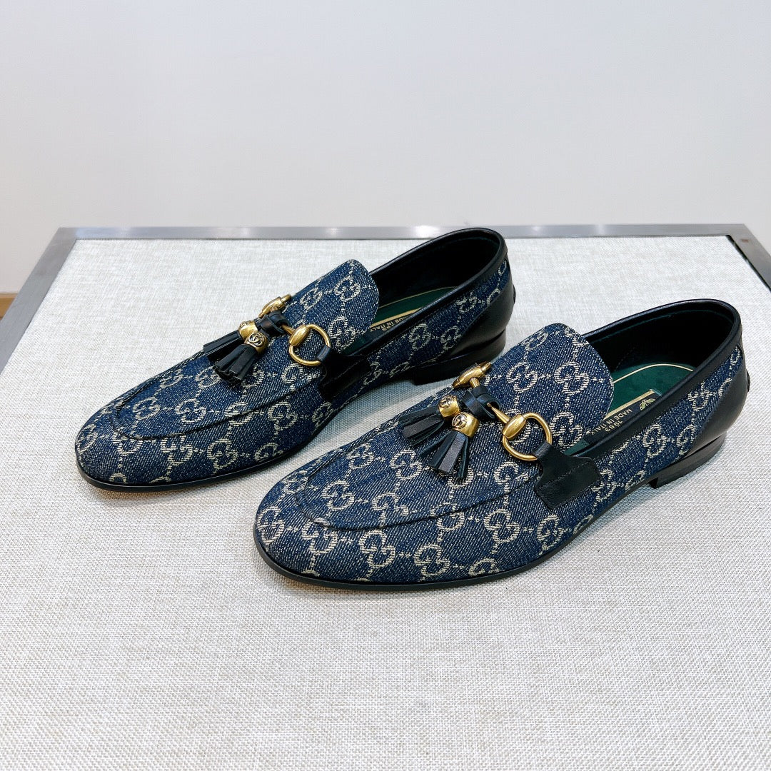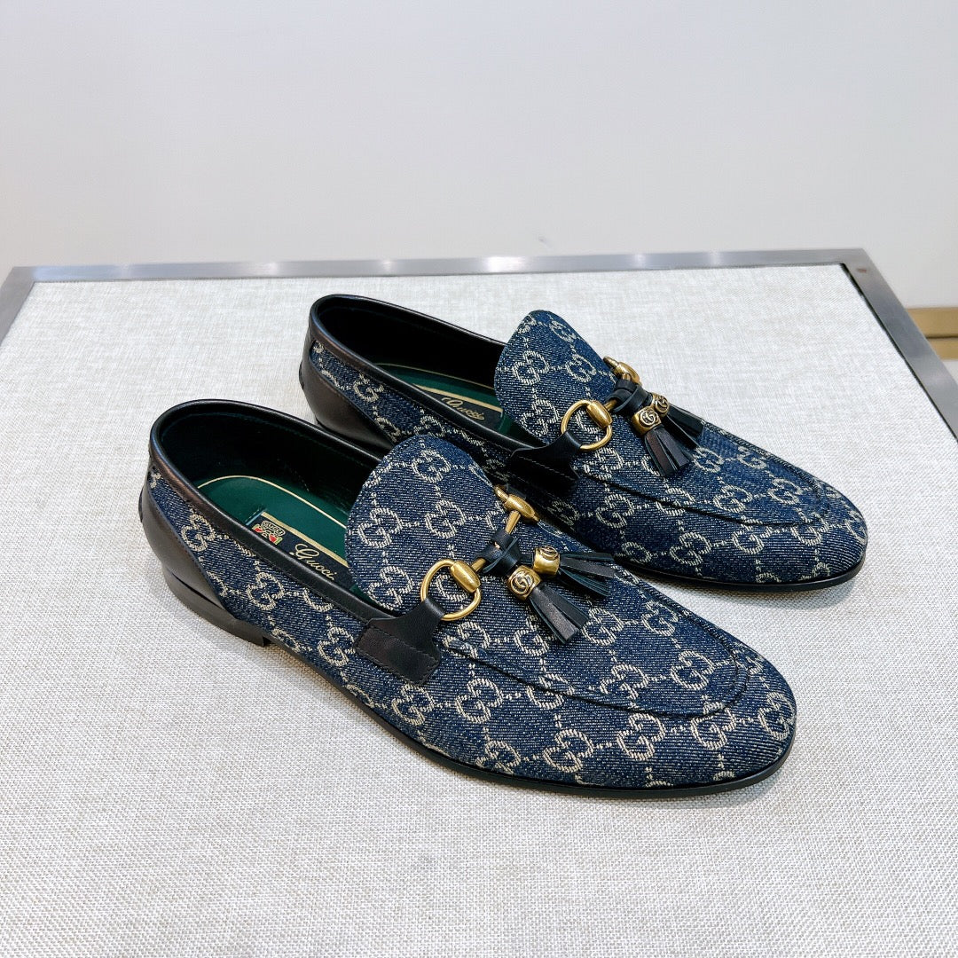 GG Men's Tassel Loafer Blue Canvas Calfskin 361363