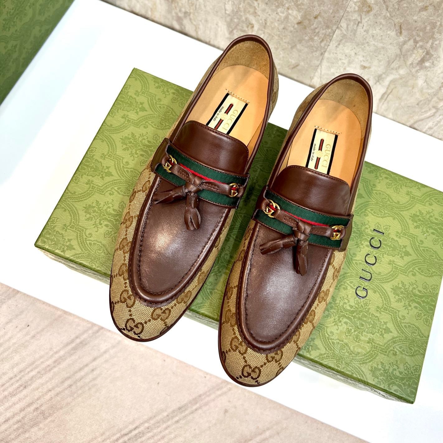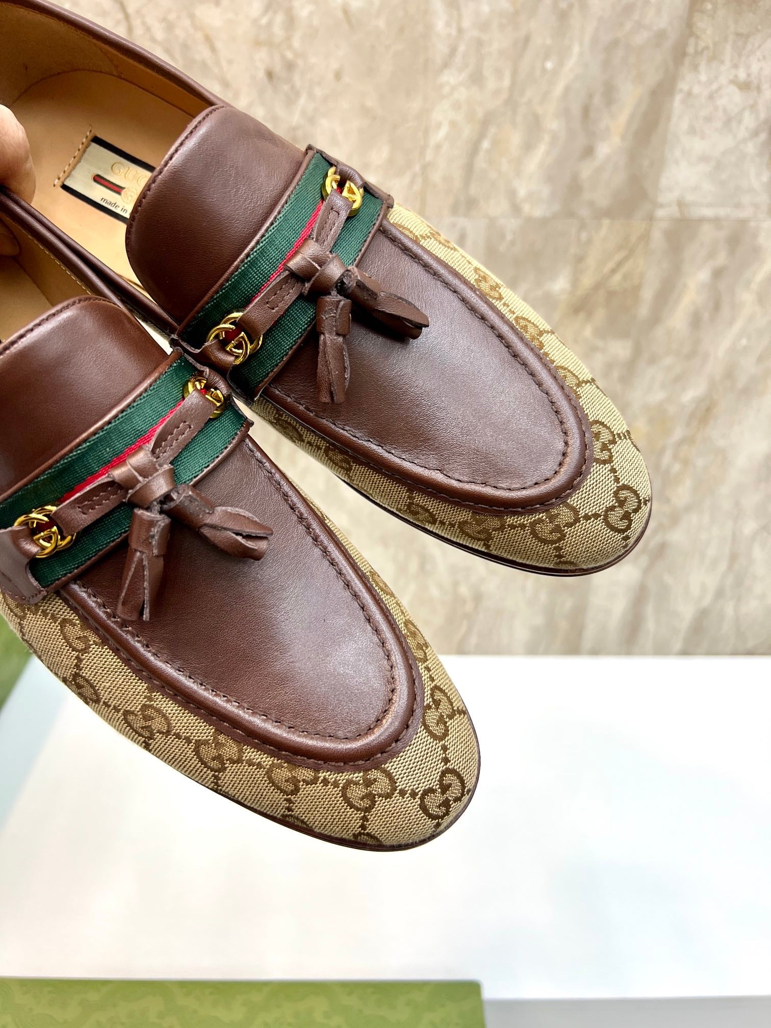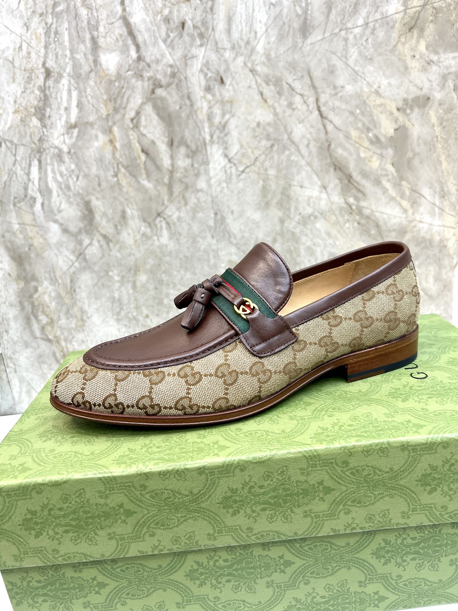 GG Men's Tassel Loafer Brown Cowhide Canvas 548740
