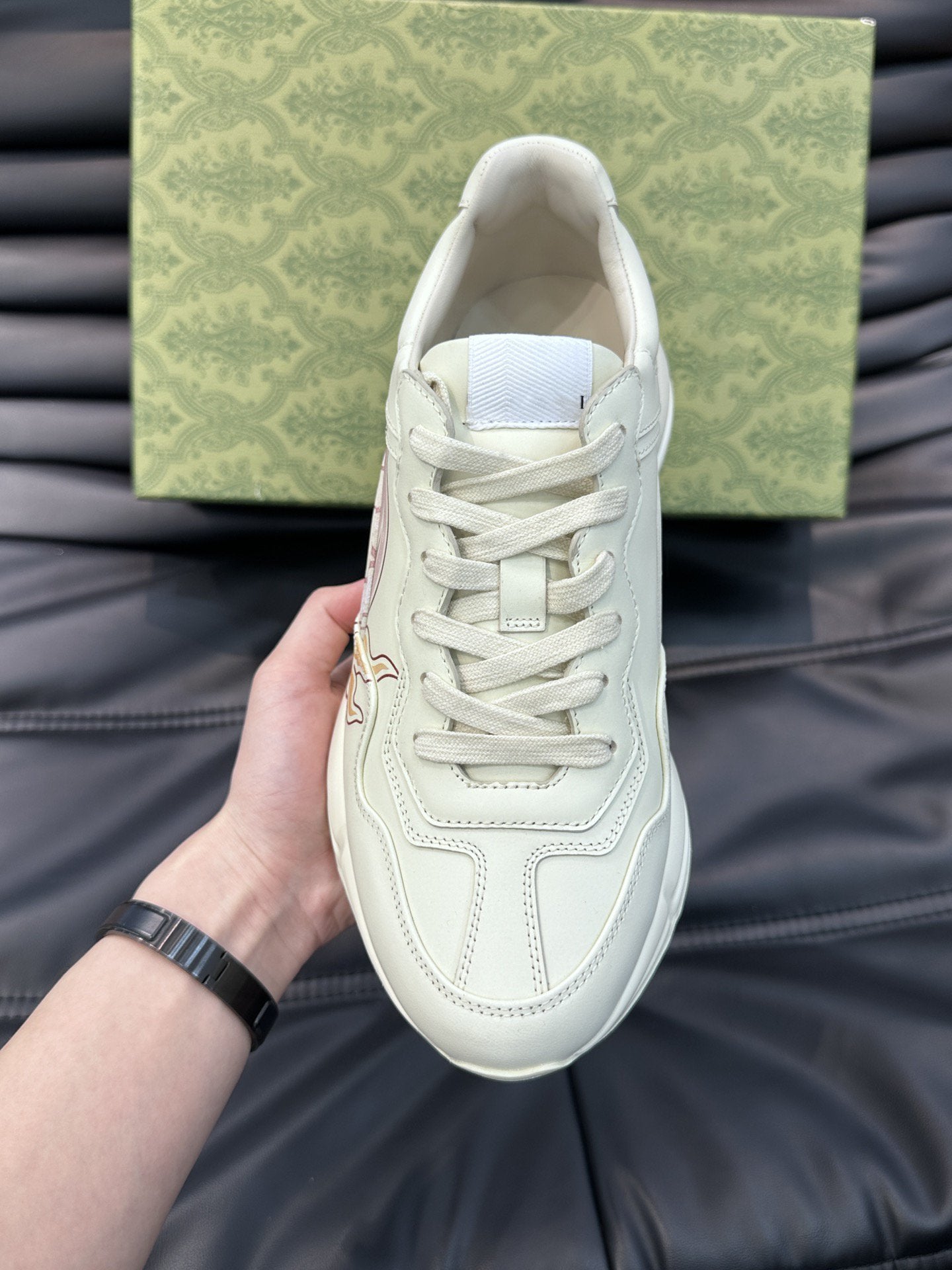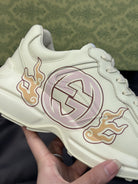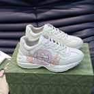 GG RHYTON LEATHER SNEAKERS WITH PINK LOGO