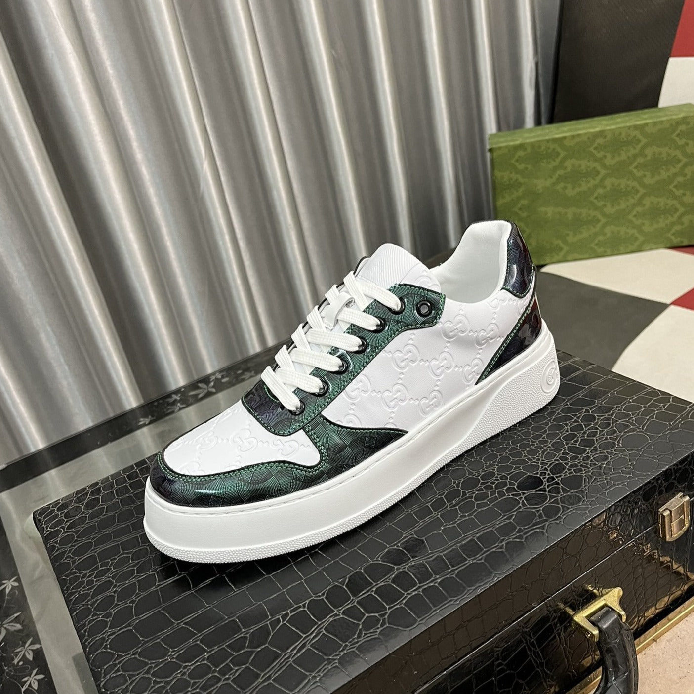 GG SNEAKERS IN EMBOSSED GREEN WHITE COWHIDE LEATHER