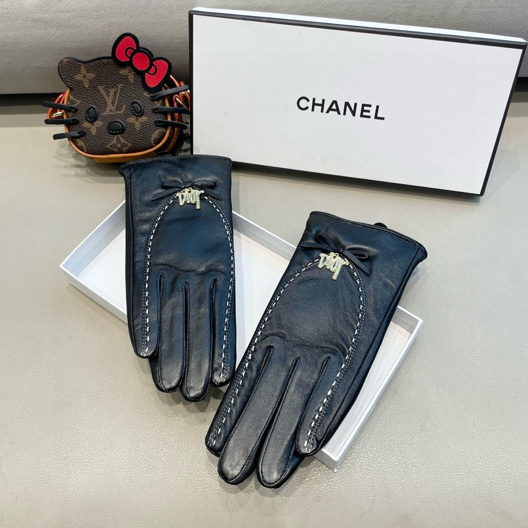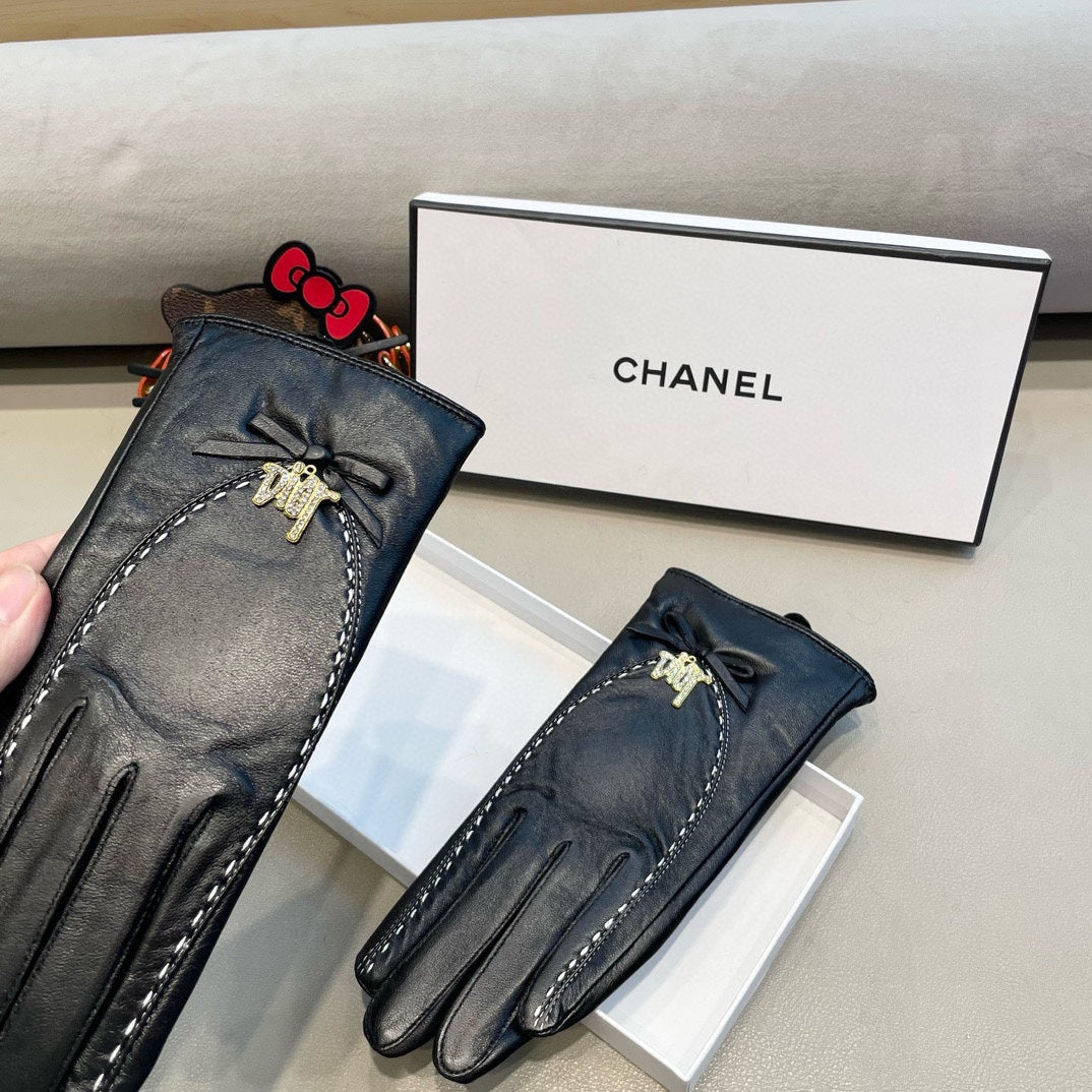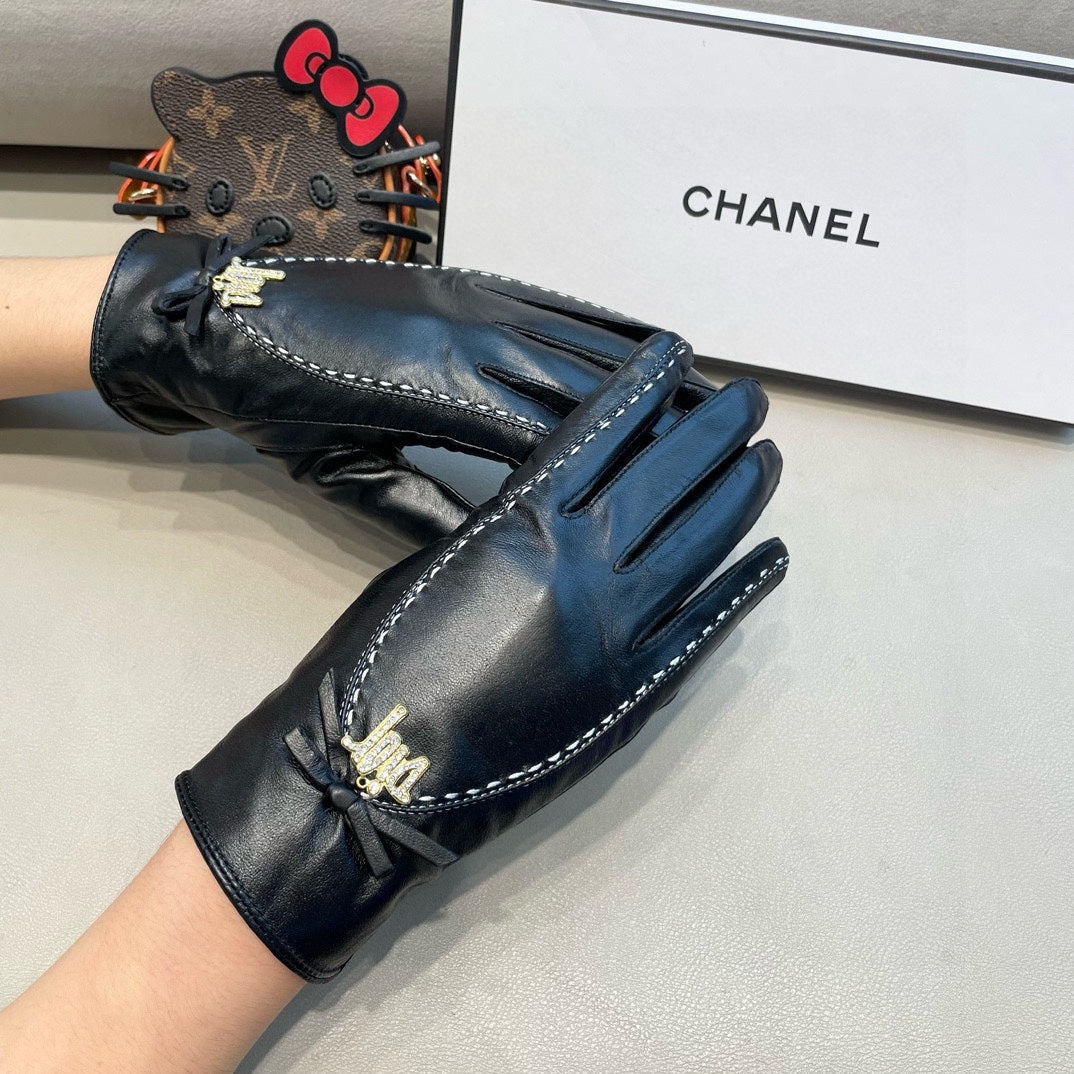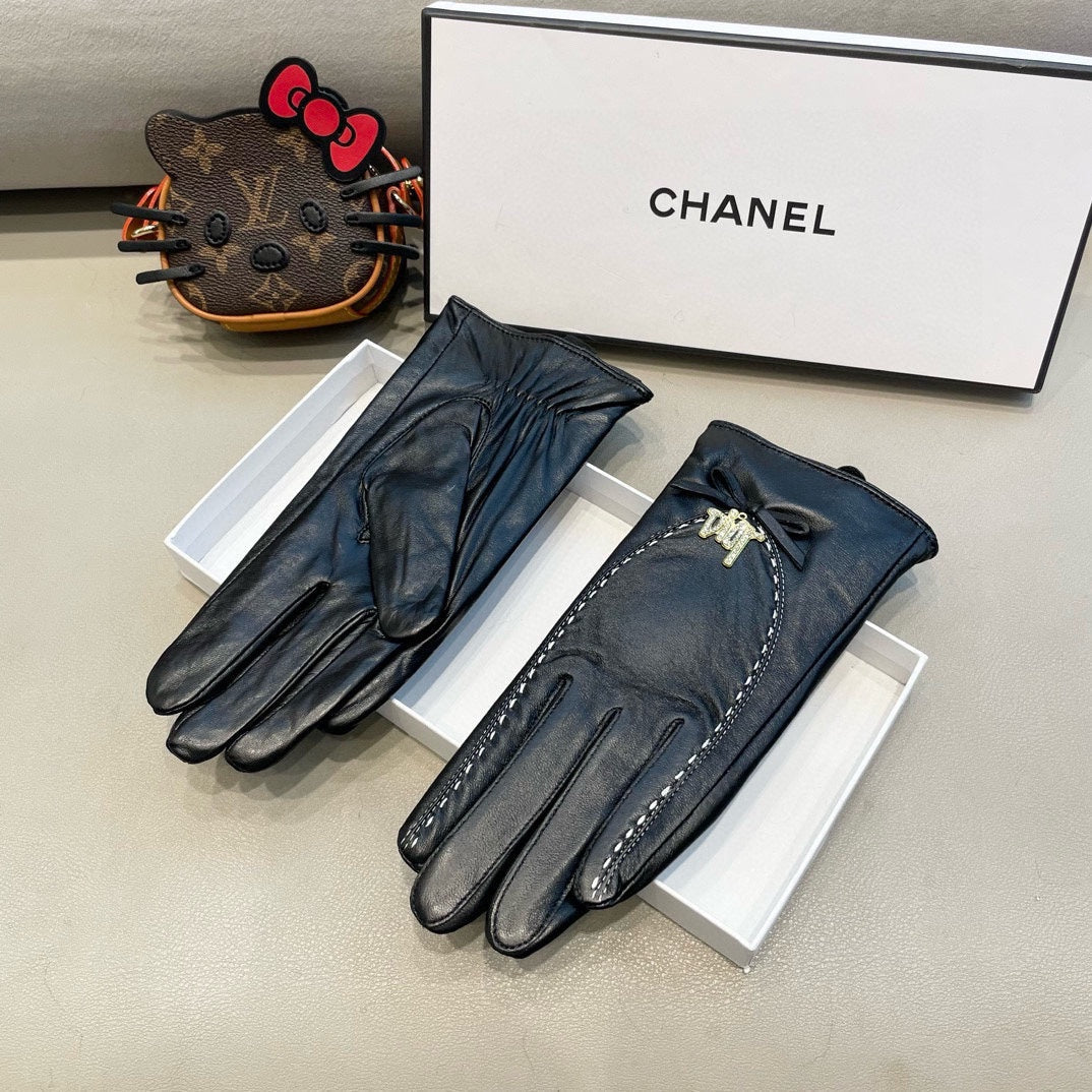 GLOVES ATTACHED BOW IN BLACK LAMBSKIN 458528