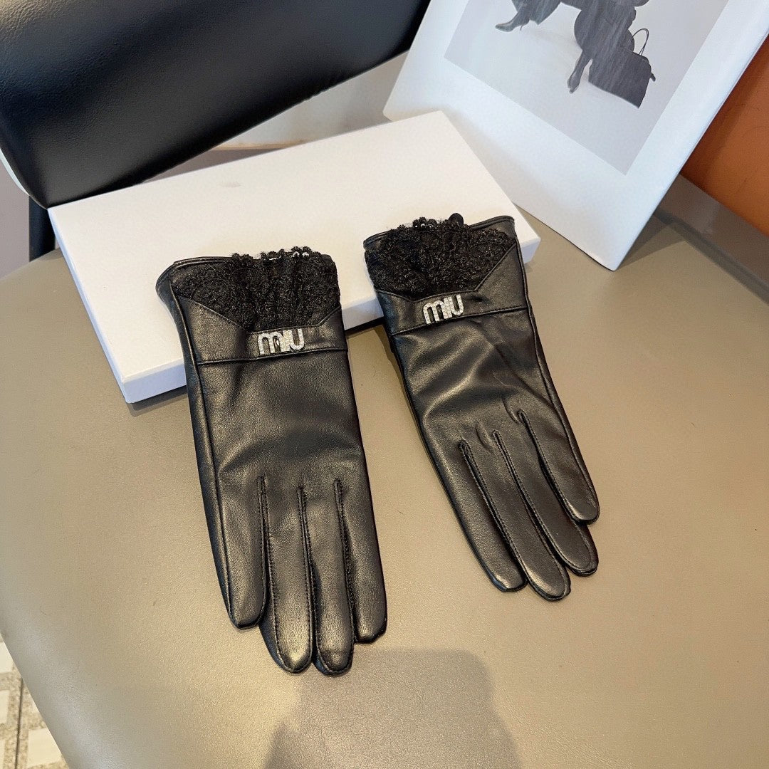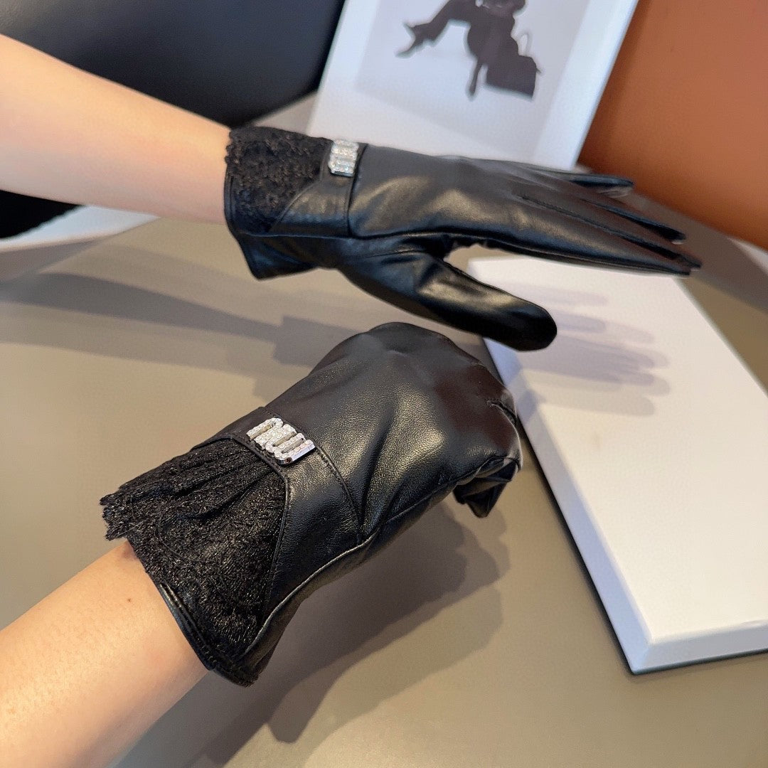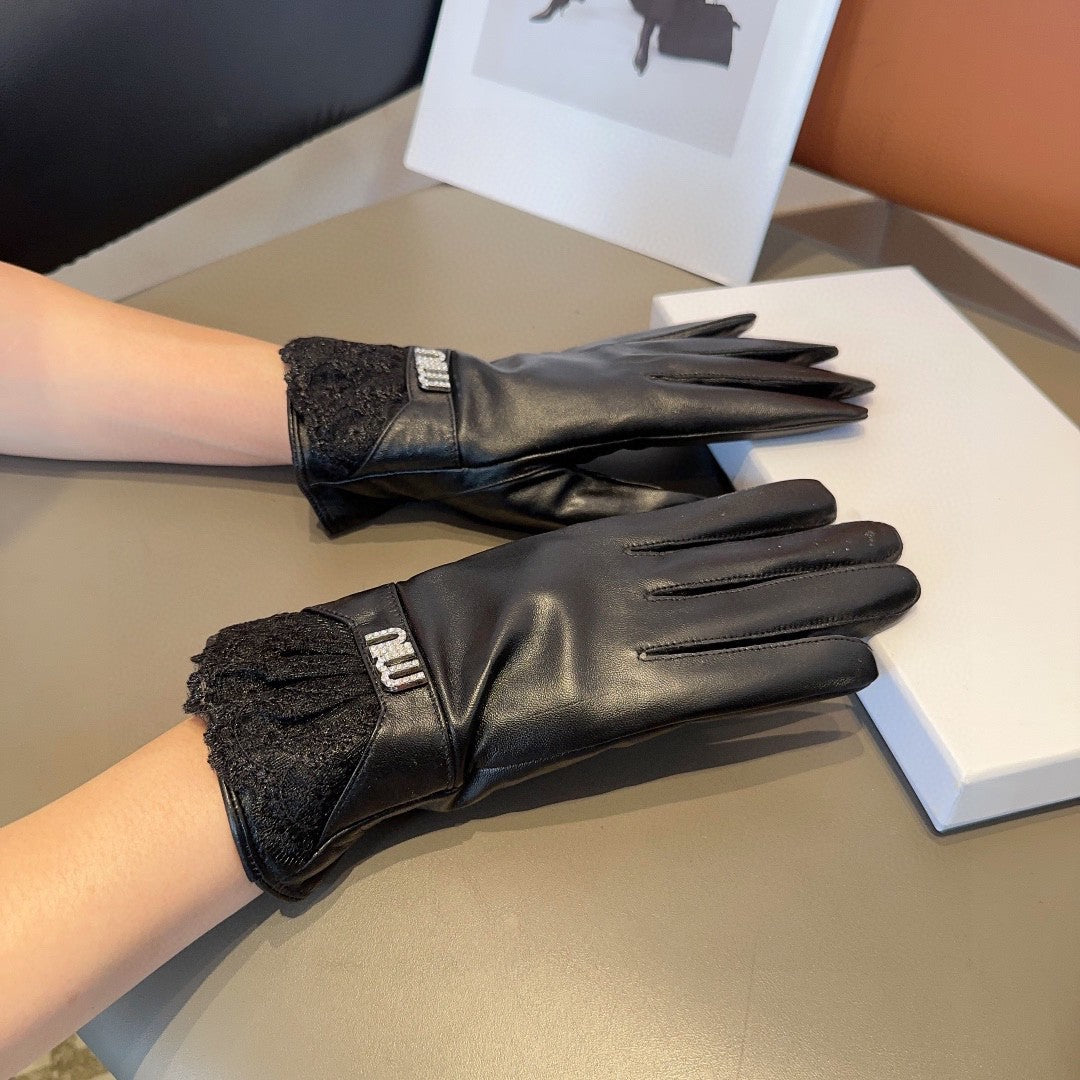 GLOVES ATTACHED LACE IN BLACK LAMBSKIN 378854