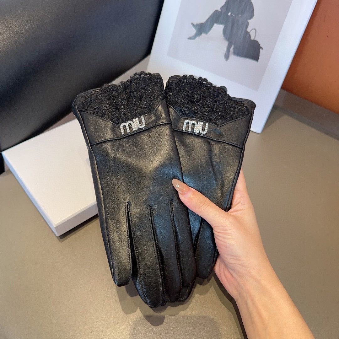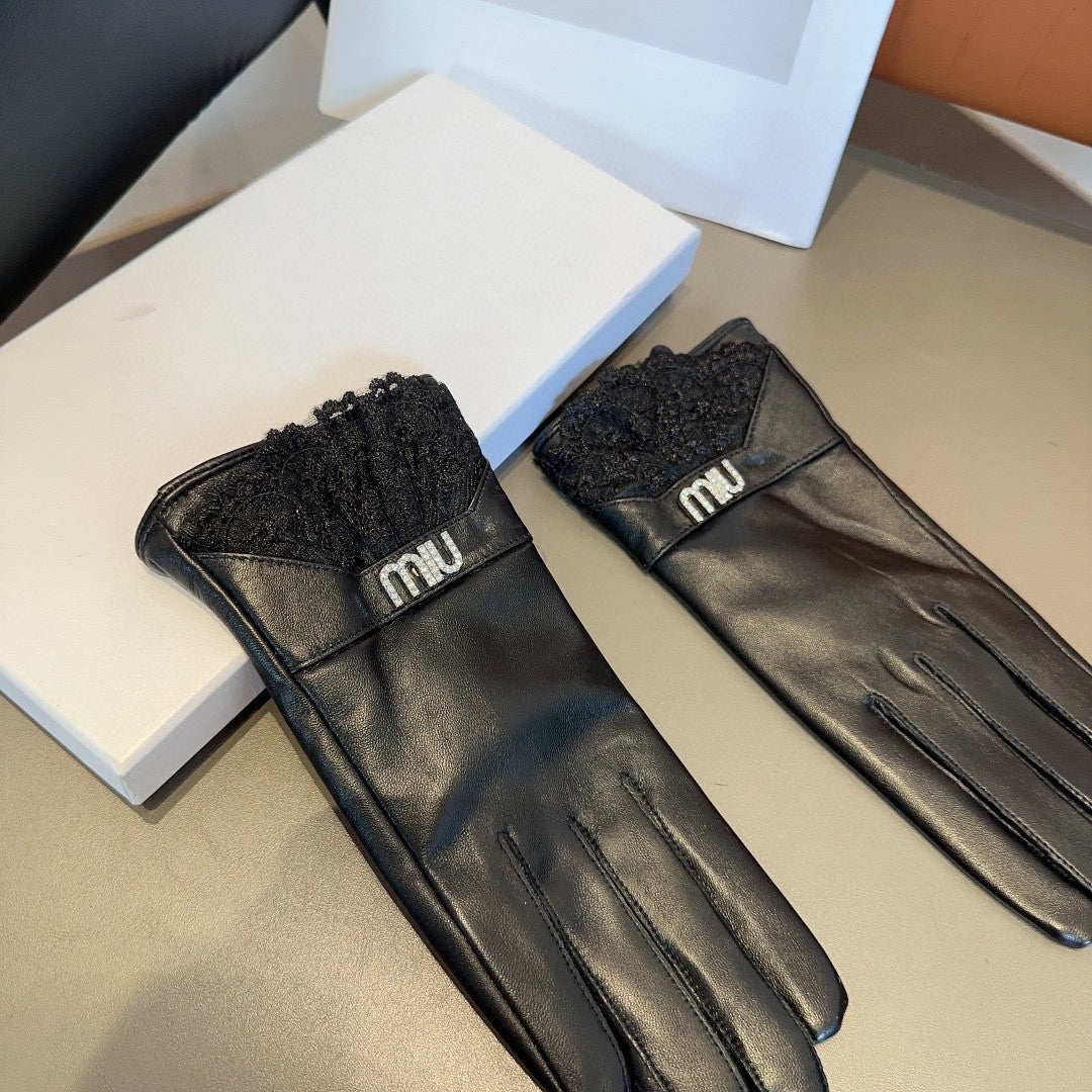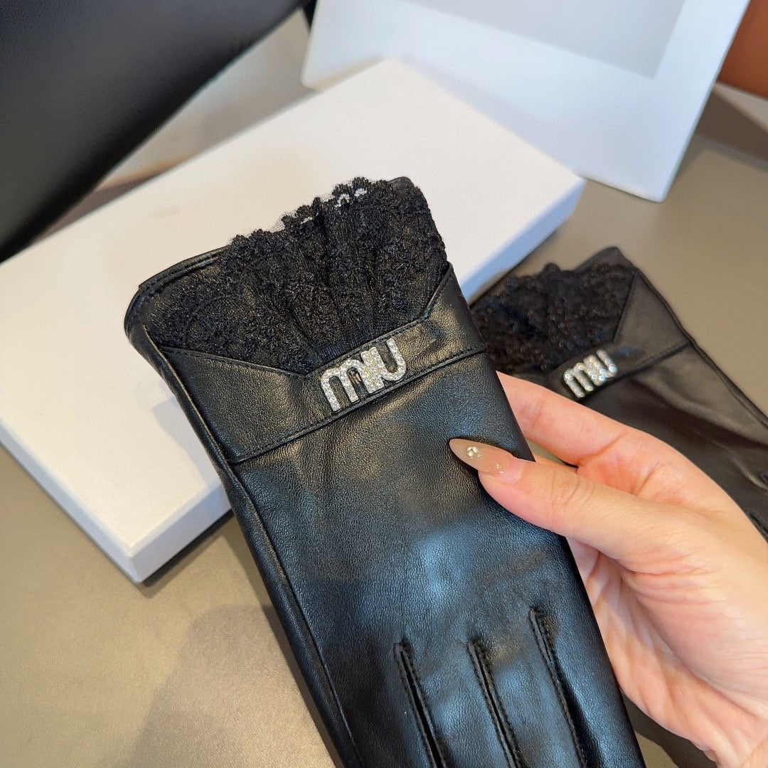 GLOVES ATTACHED LACE IN BLACK LAMBSKIN 378854