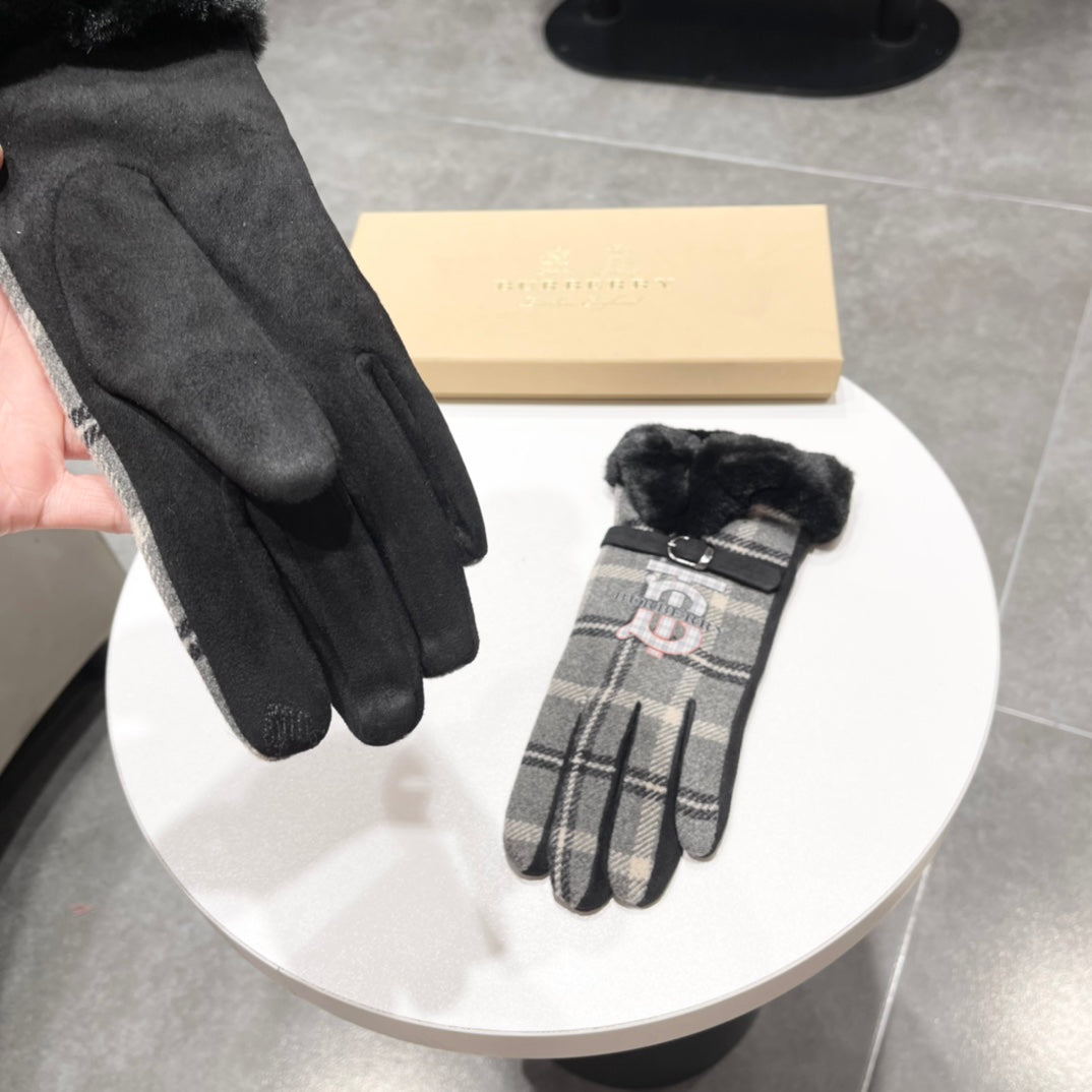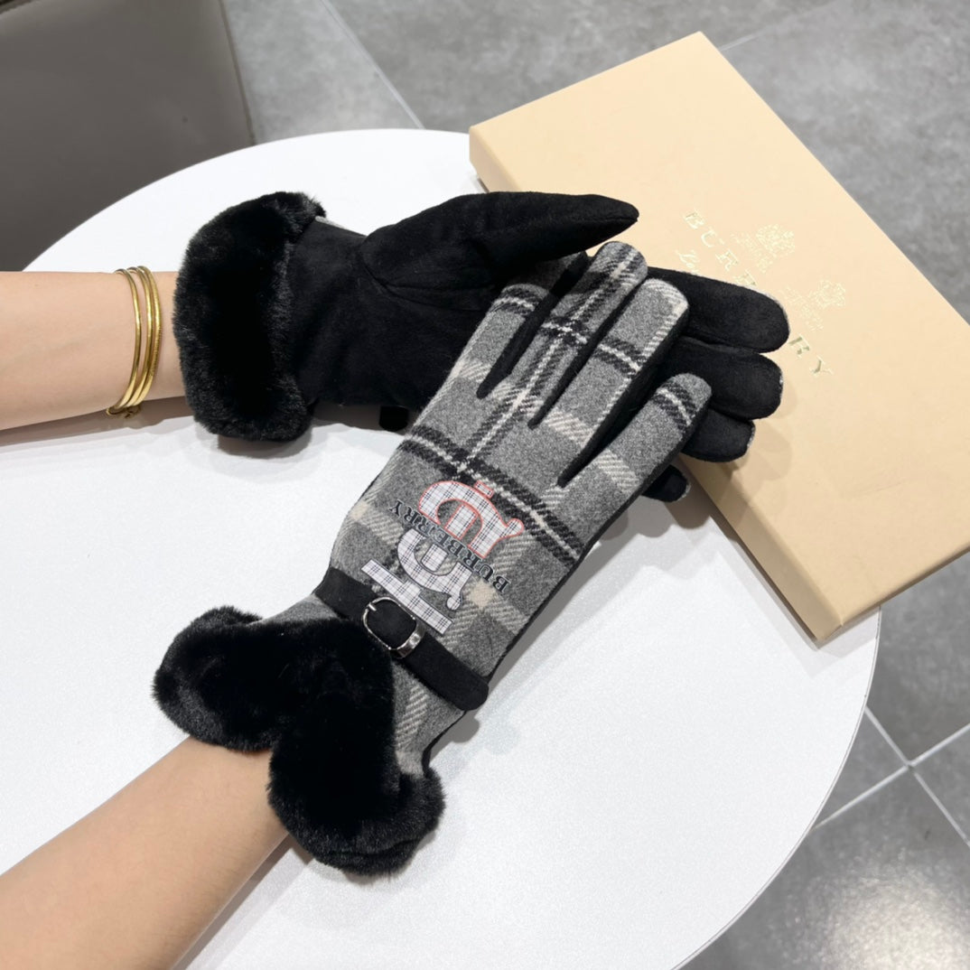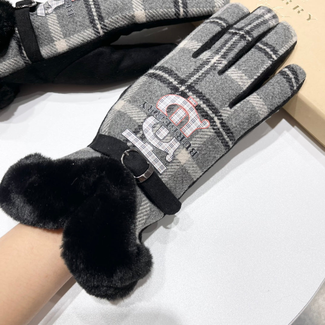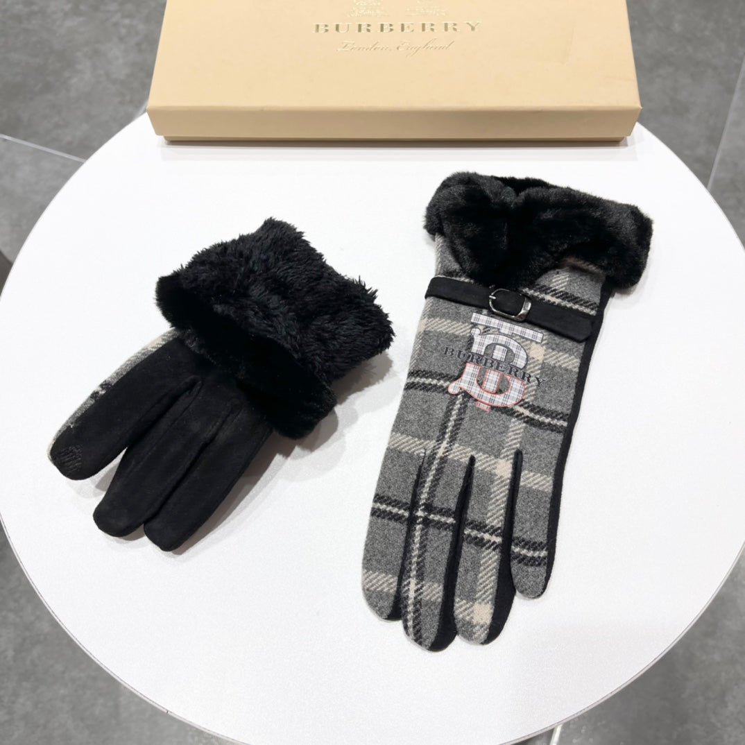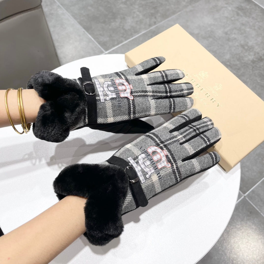 GLOVES IN BLACK WOOL AND RABBIT FUR 129715