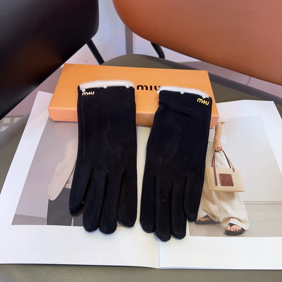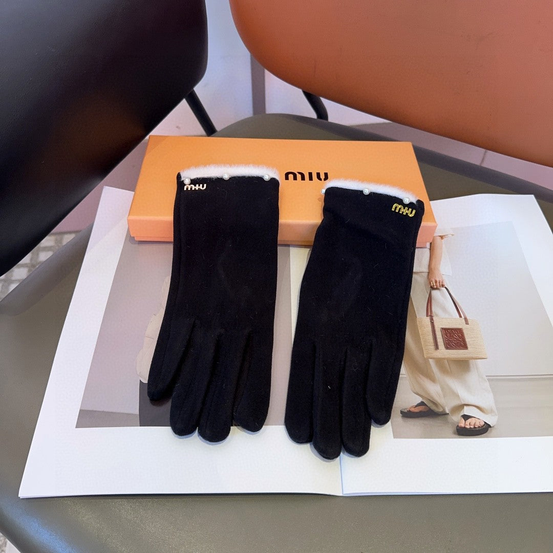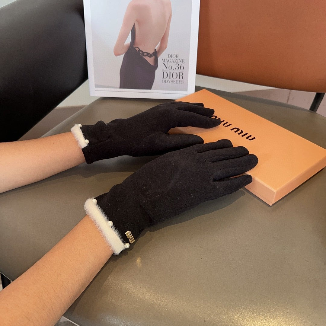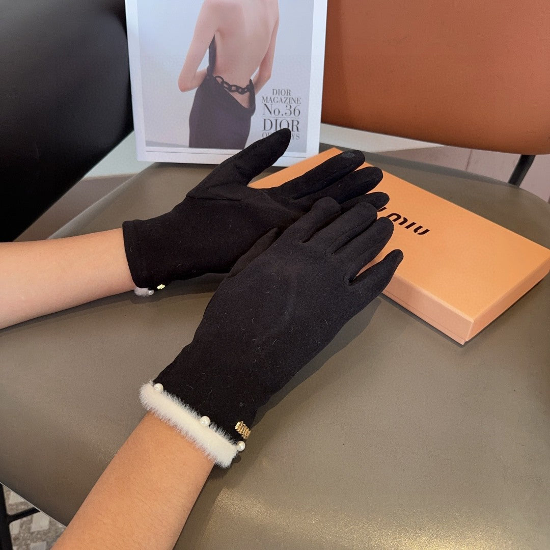 GLOVES IN BLACK WOOL MIX RABBIT FUR 458605