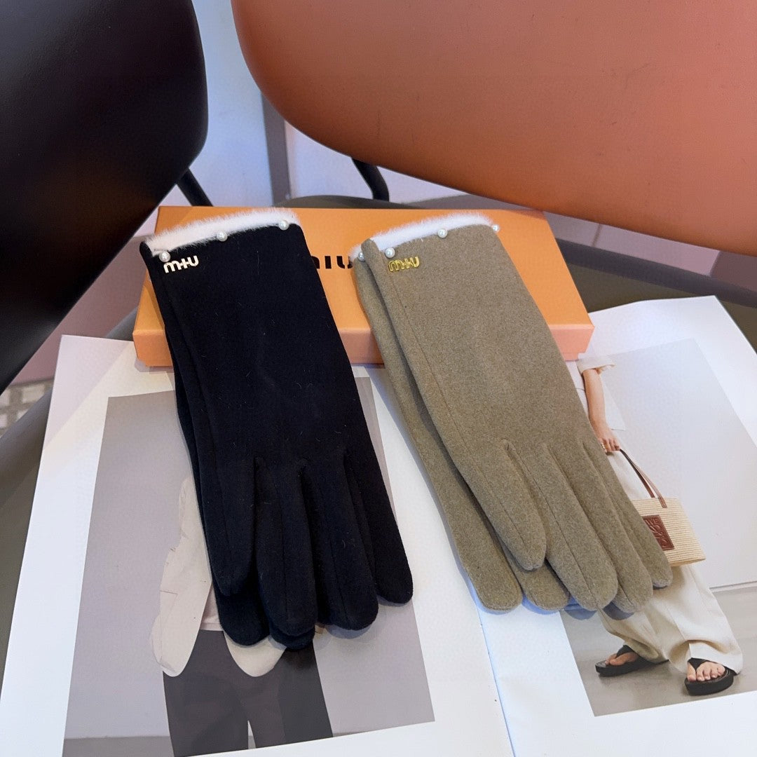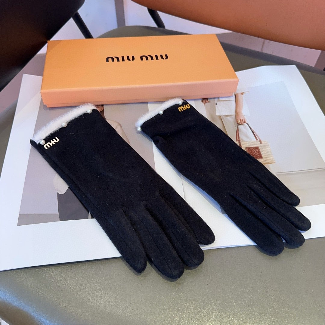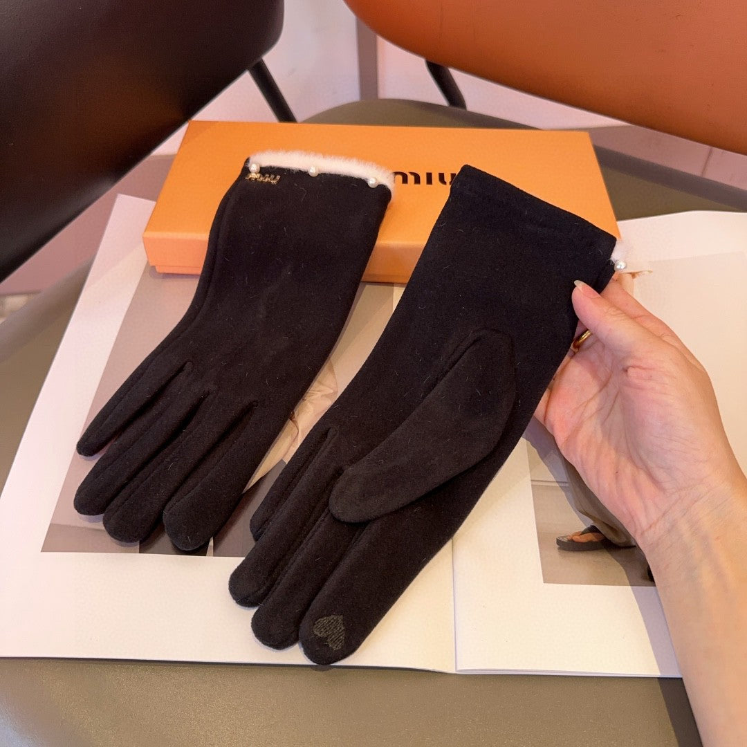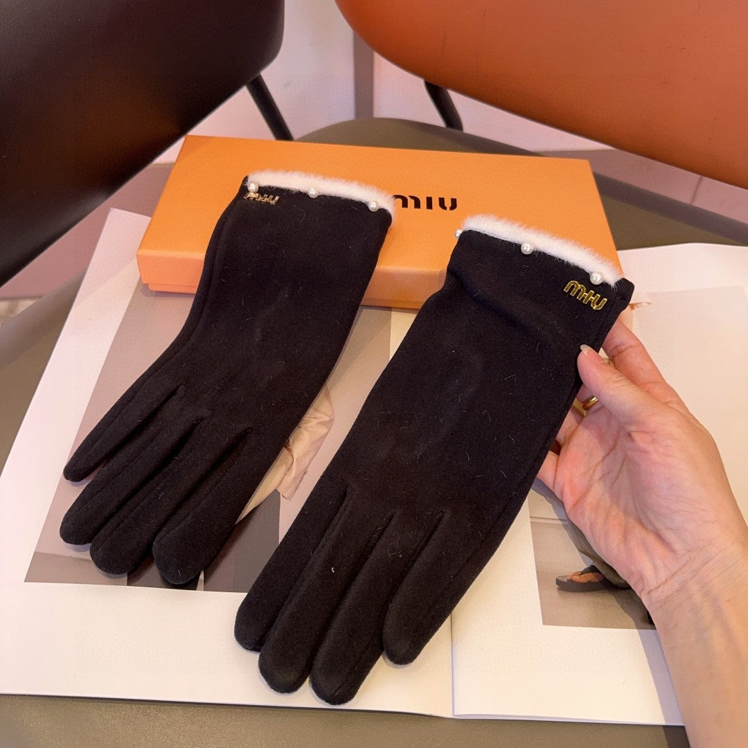 GLOVES IN BLACK WOOL MIX RABBIT FUR 458605